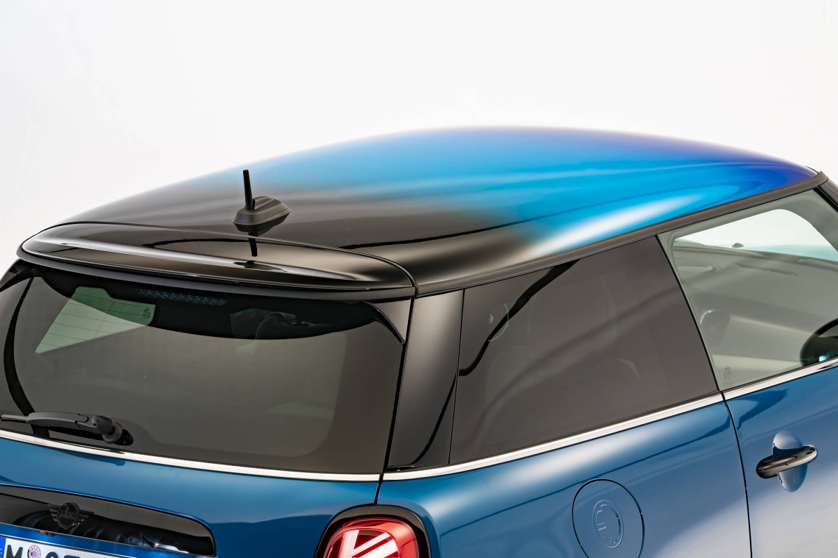 Em estreia absoluta, a MINI apresenta também o Multitone Roof (tejadilho multi-tom), que eleva o potencial de personalização para um novo patamar. Ou seja, em vez de ser uma cor única no tejadilho, a marca aplica uma noção de gradação na cor, variando do azul San Marino para o esverdeado Pearly Aqua até ao preto Jet Black. Para o efeito, a MINI recorre a um processo de pintura ‘wet-on-wet’, com as três tonalidades a serem aplicadas uma após a outra.