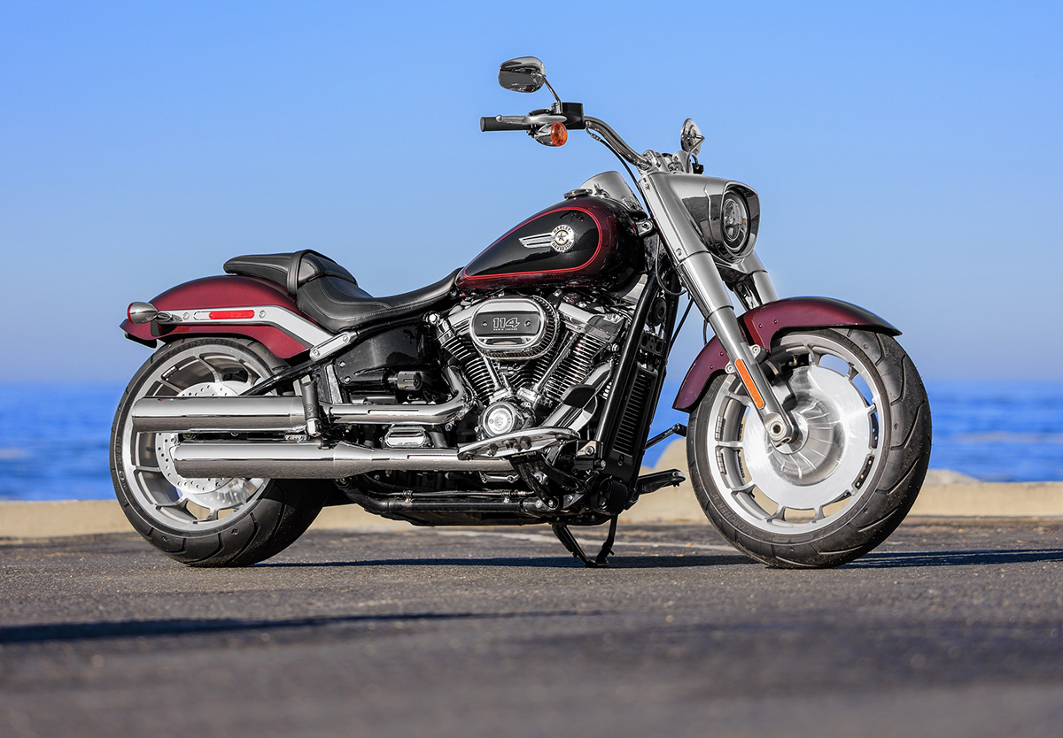 – Fat Boy 114: O ícone fat-custom original comanda a estrada com uma postura de rolo compressor. Para 2022 as suas jantes de alumínio fundido Lakester foram redesenhadas com 11 raios turbine-like e um open center e o clássico emblema do depósito da Fat Boy® foi revisto e agora tem uma única “asa” à direita enquanto mantém a estrela centralizada.