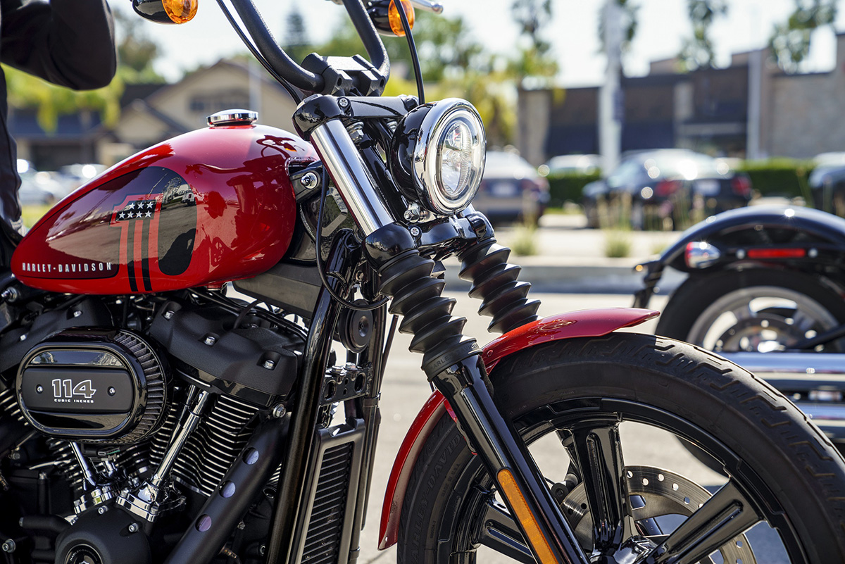– Street Bob 114: Uma bobber stripped-down coberta de preto e alimentada pelo motor Milwaukee-Eight 114. A Street Bob 114 é uma base ideal para customização com base na performance. Novidade para 2022 são as jantes de alumínio fundido Annihilator com acabamento Gloss Black que substituem as jantes laced.