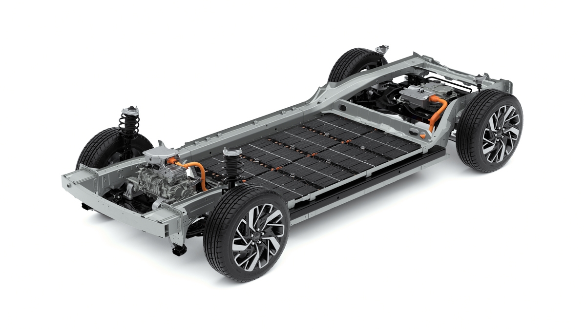 A plataforma assegura ainda a segurança da bateria através de uma estrutura de suporte de baterias feita de aço de alta resistência. Componentes de aço estampado a quente rodeiam esta estrutura para obter uma rigidez adicional. Desta forma, em caso de colisão, a energia do impacto pode ser absorvida eficientemente, graças às secções da carroçaria e chassis preparadas para esse efeito, ligações de carga de energia efetiva e uma secção central da bateria firmemente ligada à carroçaria.