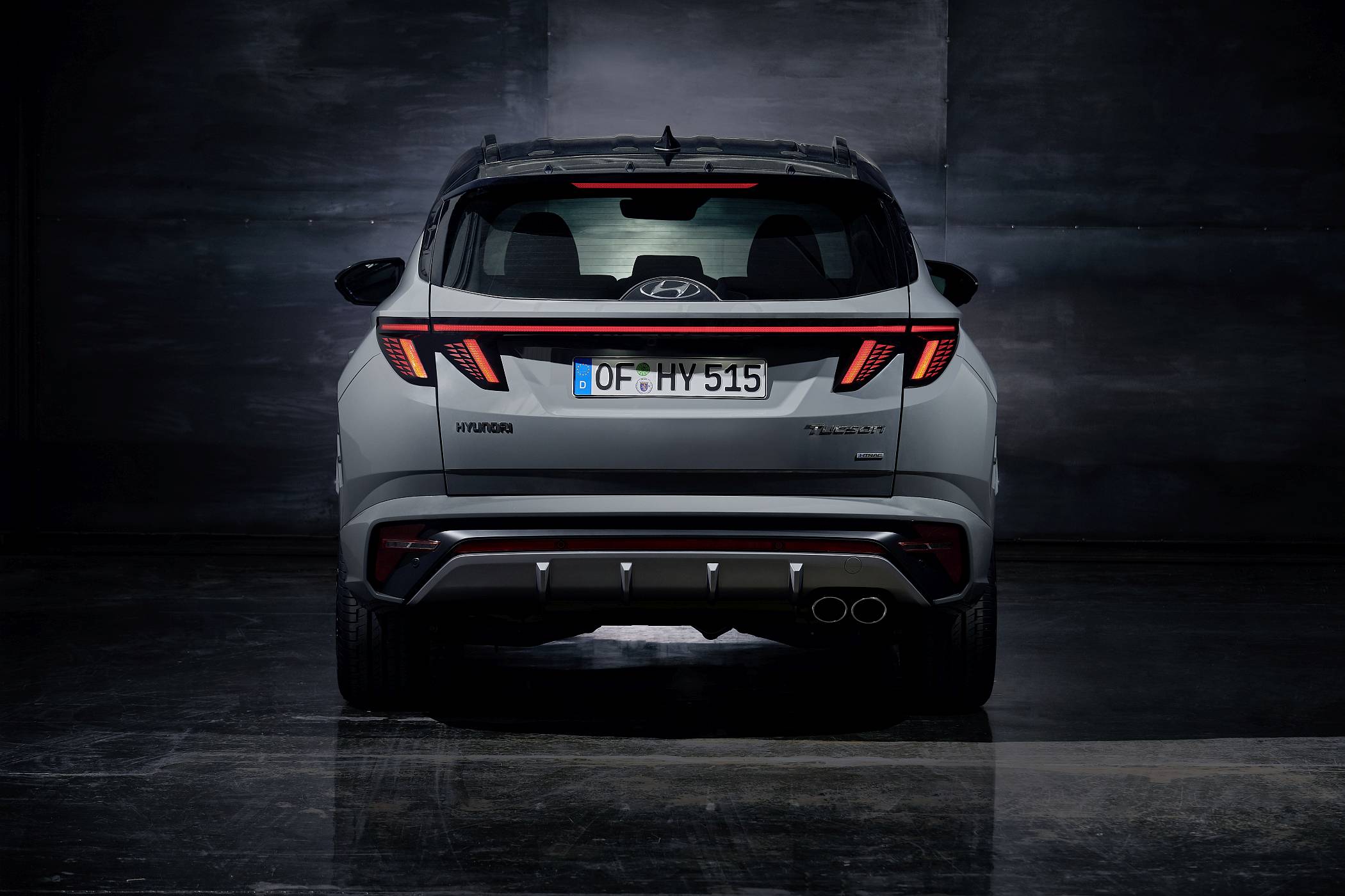 A aparência desportiva é replicada na secção traseira, com para-choques bastante largo e uma proteção inferior da carroçaria em cinzento, a que se junta um spoiler superior para maior eficácia aerodinâmica. Há ainda uma dupla saída de escape. Os espelhos retrovisores de estilo Phantom Black, pintados em preto, são outra especificidade do N Line.