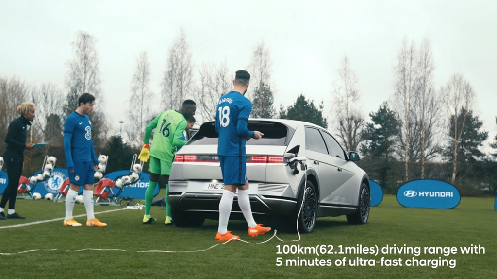 A função V2L, que transforma o veículo num “carregador sobre rodas”, pode ser utilizadapara qualquer dispositivo eletrónico –scooters, bicicletas elétricas ou equipamento de campismo. Ashley Andrew, Diretor da Hyundai Motor UK, afirmou: “O novo Hyundai IONIQ 5 é o primeiro veículo da marca IONIQ e nós queríamos mostrar os benefícios do seu carregamento bidirecional. Achamos que seria interessante demonstrar esta tecnologia com o nosso parceiro Chelsea FC. A tecnologia V2L não foi necessariamente concebida para ajudar os jogadores de futebol a manterem-se em forma, no entanto, demonstra a versatilidade e utilidade desta tecnologia aos condutores.”.