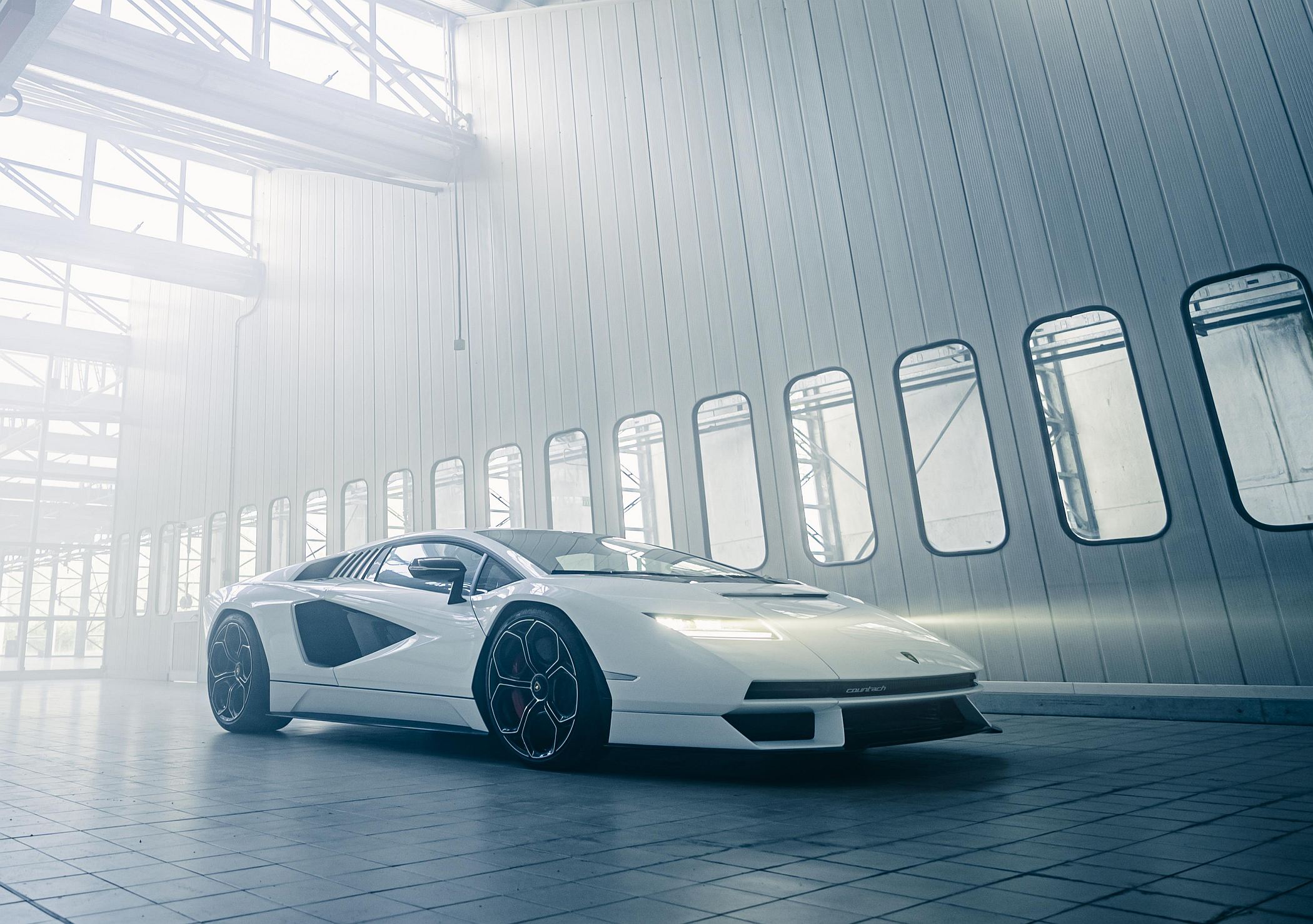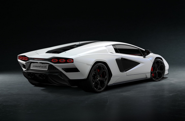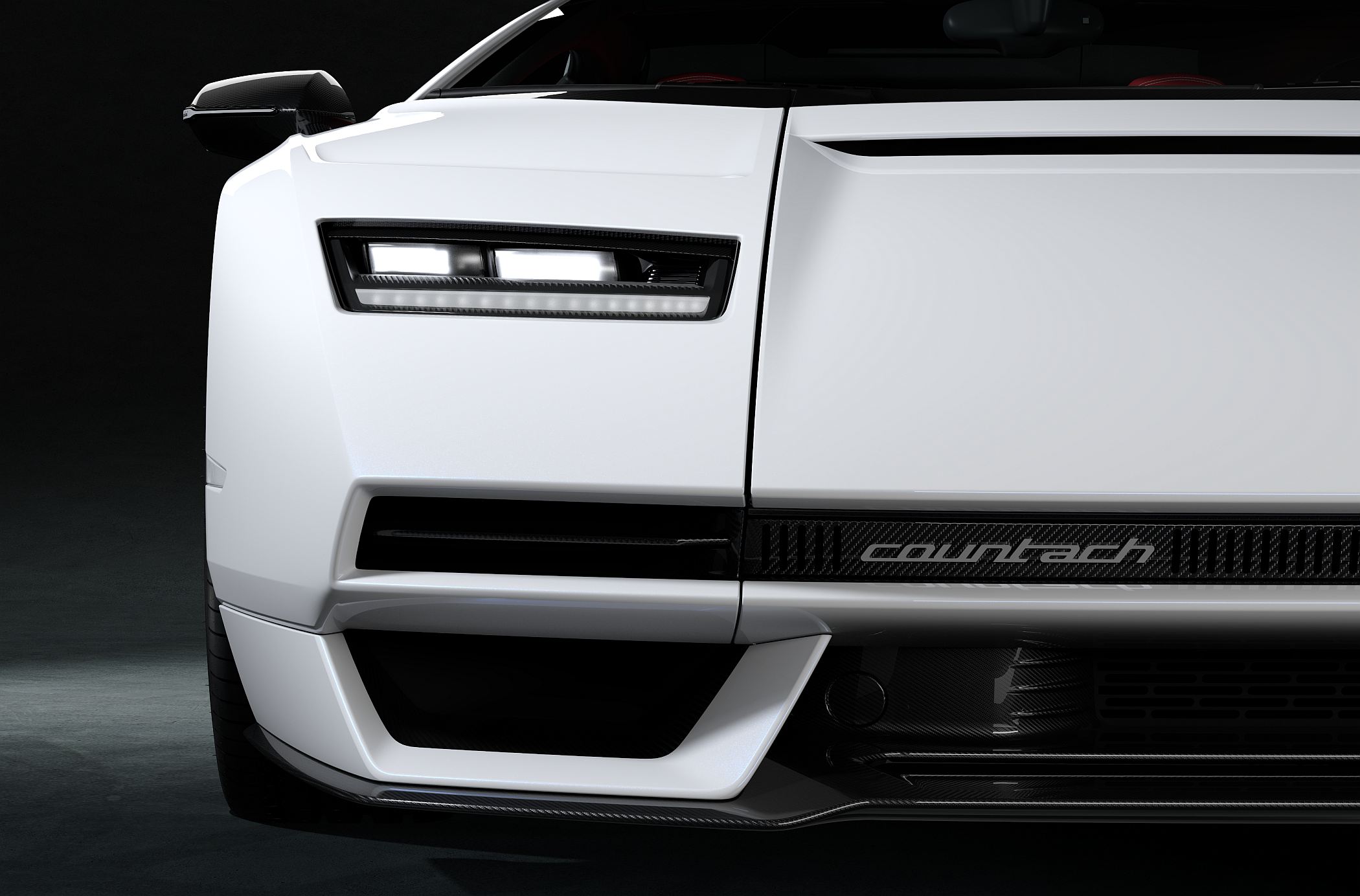 Entre os elementos distintivos deste modelo estão o emblemático formato em cunha, que se junta aos faróis de aspeto retangular e às cavas das rodas com temática hexagonal. A superfície vidrada inclinada é outra reminiscência do Countach original, enquanto na traseira destacam-se os mesmos indícios de design do modelo da década de 1970, como as tomadas de ar na parte superior da carroçaria, fortalecendo os ‘ombros’ acima da cava traseira das rodas. As entradas de ar ‘NACA’ nas portas permitem identificação fácil.