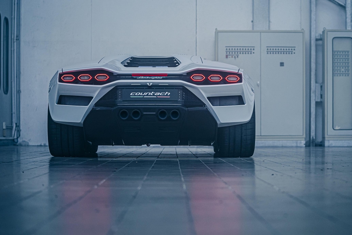 Entre os elementos distintivos deste modelo estão o emblemático formato em cunha, que se junta aos faróis de aspeto retangular e às cavas das rodas com temática hexagonal. A superfície vidrada inclinada é outra reminiscência do Countach original, enquanto na traseira destacam-se os mesmos indícios de design do modelo da década de 1970, como as tomadas de ar na parte superior da carroçaria, fortalecendo os ‘ombros’ acima da cava traseira das rodas. As entradas de ar ‘NACA’ nas portas permitem identificação fácil.