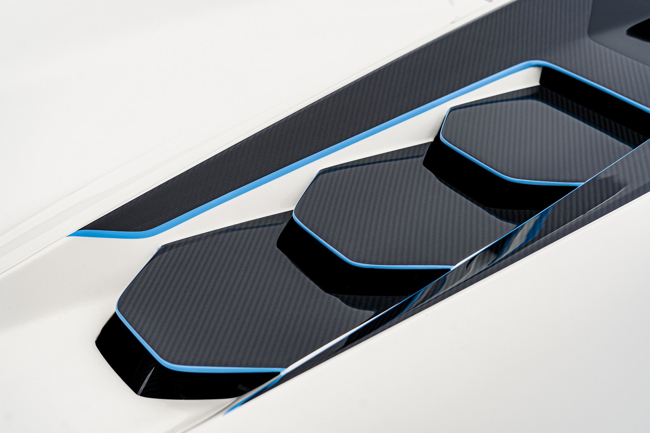 A carroçaria em fibra de carbono foi polida e adelgaçada à mão pelos engenheiros de aerodinâmica da Lamborghini para providenciar o fluxo de ar ótimo tanto para a performance como para os ocupantes do cockpit, assegurando condução confortável a céu aberto a altas velocidades.
