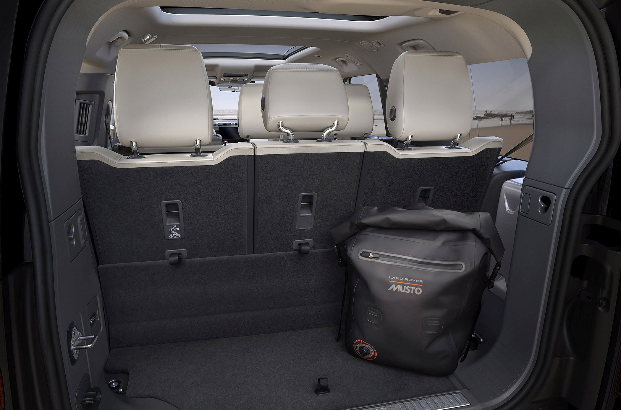Os passageiros da segunda e terceira fila desfrutam de uma elevação em anfiteatro que melhora a visibilidade. O acesso à terceira fila é muito simples, dado que os bancos da segunda fila deslizam para a frente e podem ser rebatidos para proporcionar acesso amplo. Na zona da bagageira, os clientes têm apenas de baixar a suspensão pneumática eletrónica do Defender utilizando os botões incorporados no interior do compartimento de carga para facilitar objetos na bagageira.