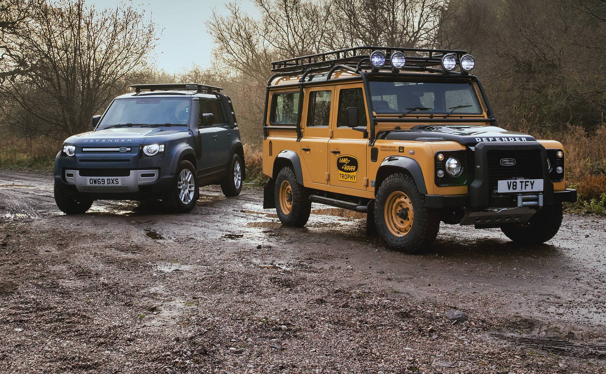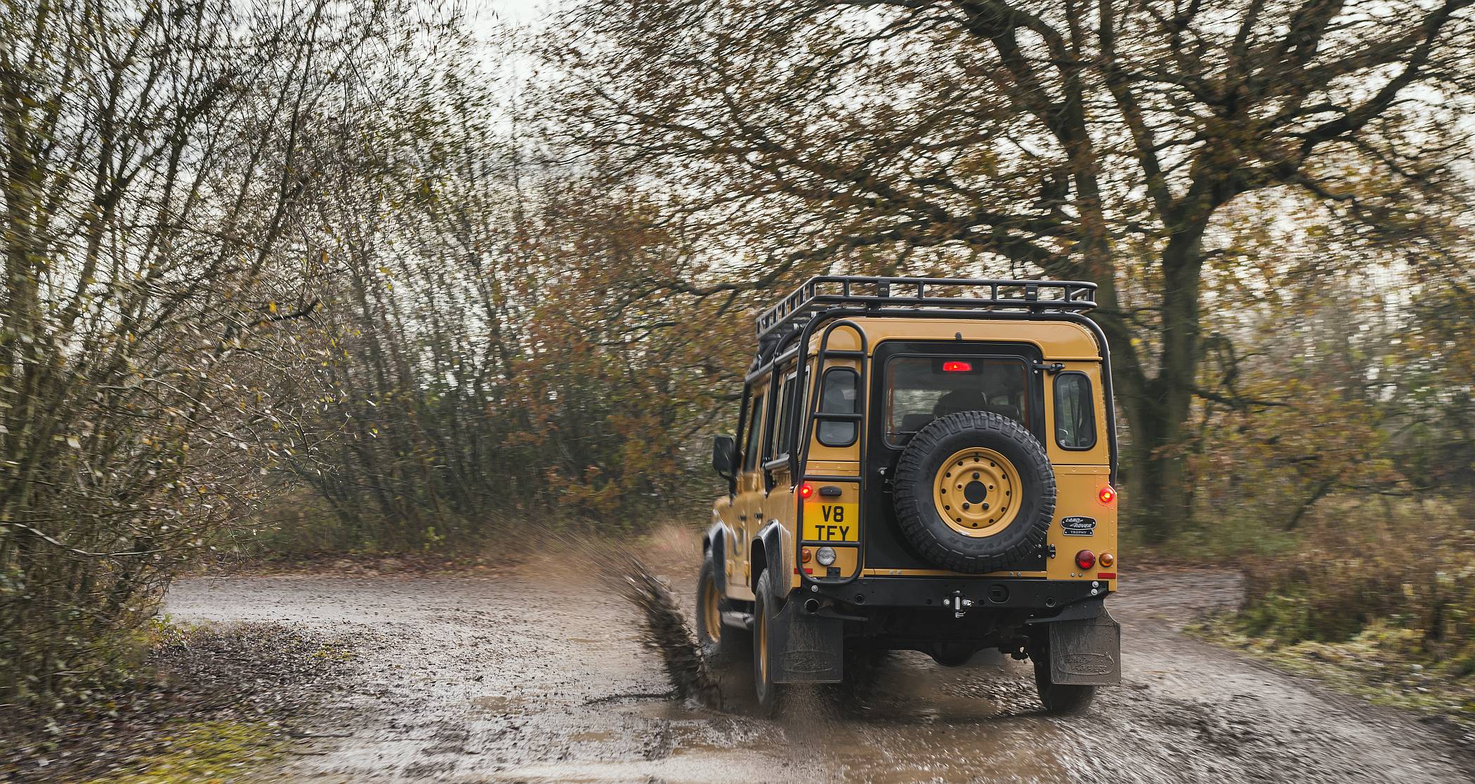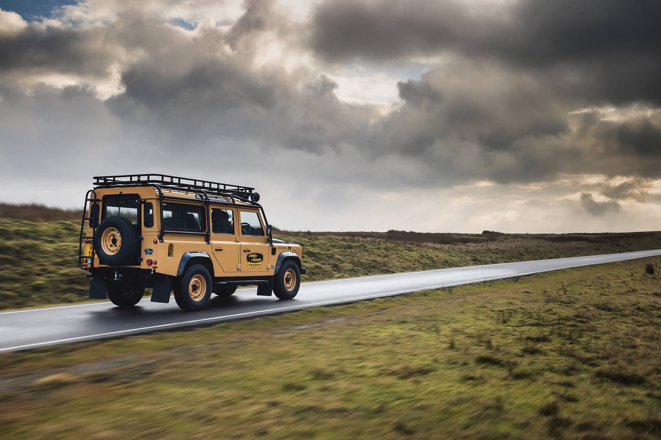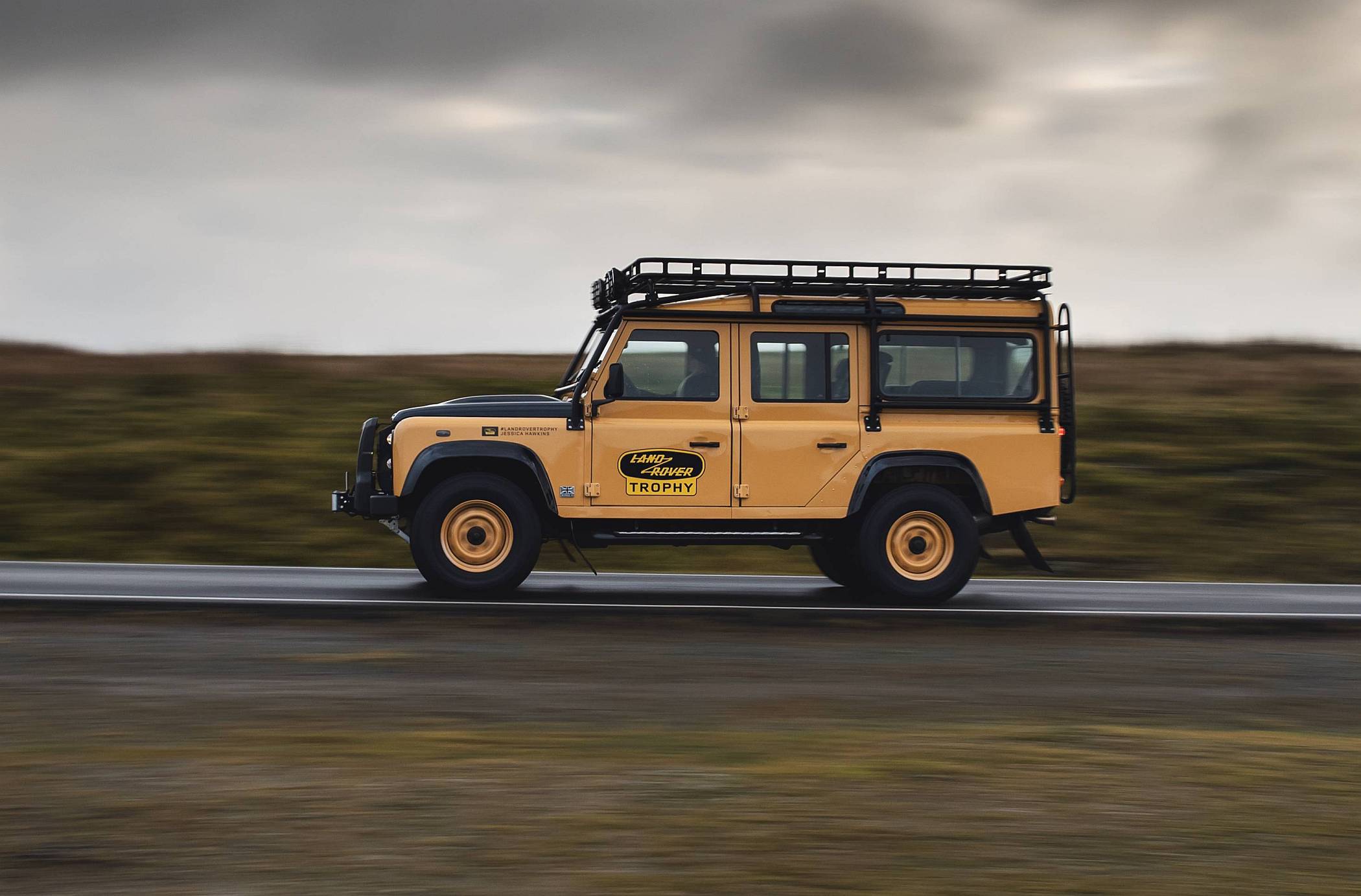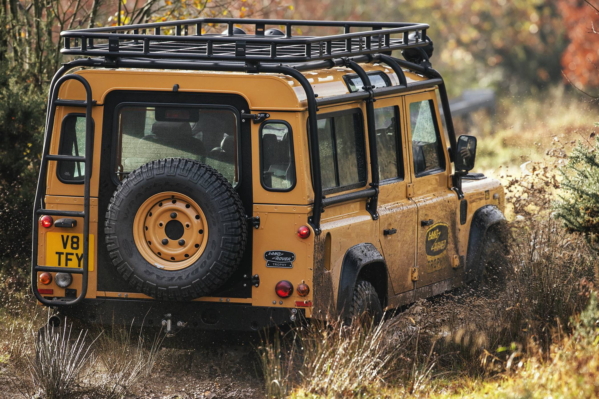 As 25 unidades do Defender Works V8 Trophy com carroçaria 90 ou 110 Station Wagon irão incorporar um acabamento exclusivo em Eastnor Yellow com jantes em aço de 16 polegadas na mesma cor. O tom Narvik Black contrastante será aplicado nas abas dos guarda-lamas, capot e tampa da bagageira. Este veículo especializado irá também incorporar faróis em LED, grelha dianteira Heritage, o logótipo exclusivo Land Rover Trophy e a informação de participação no evento de cada proprietário.
