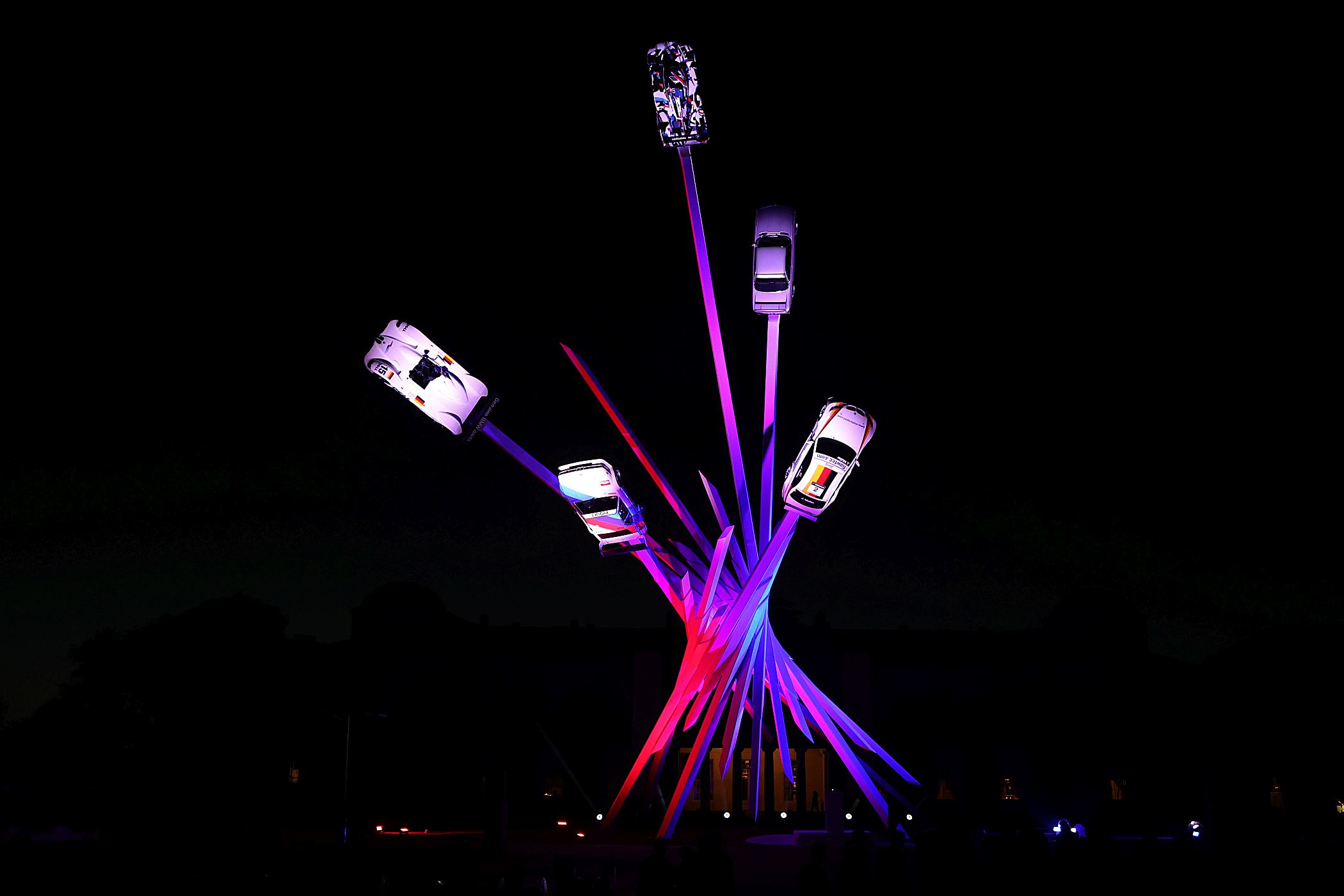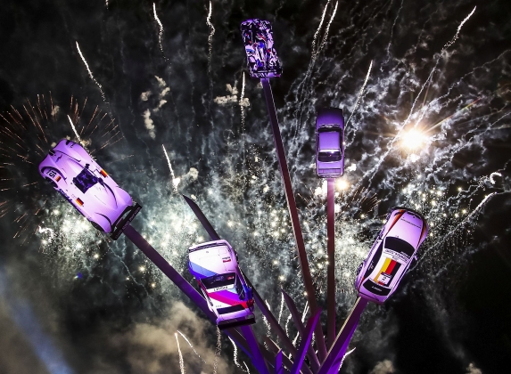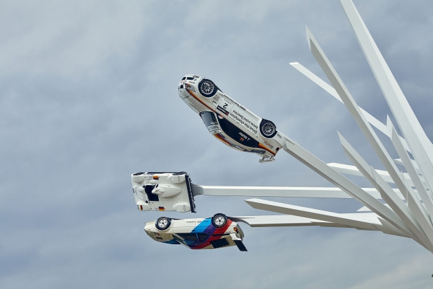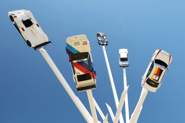 Para sublinhar a importância da BMW M na indústria automóvel, a marca foi também homenageada com a popular escultura que expõe diversos modelos importantes em torno do recinto em posição vertical, apontando assim às estrelas.