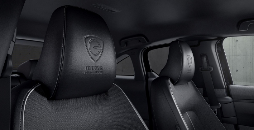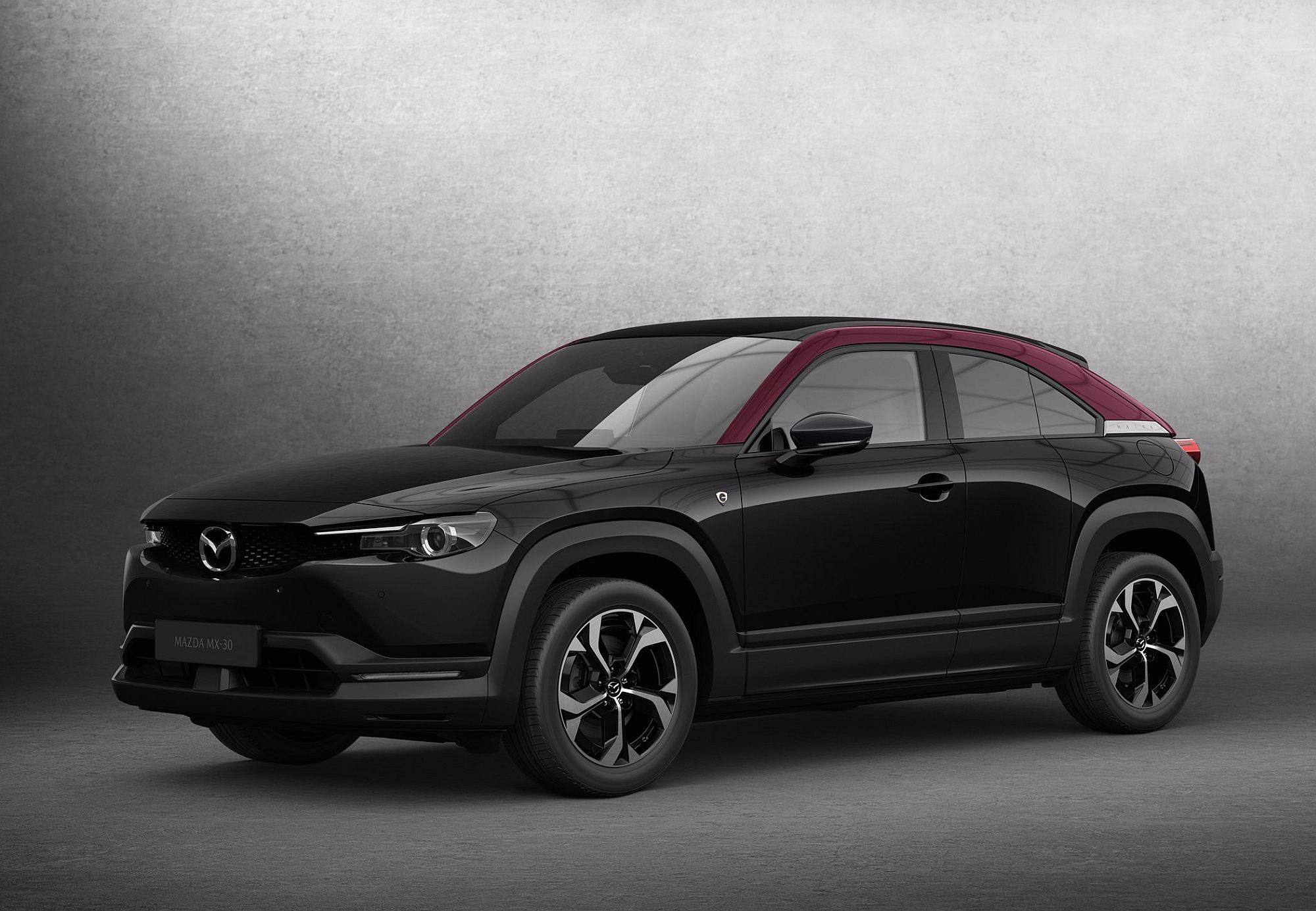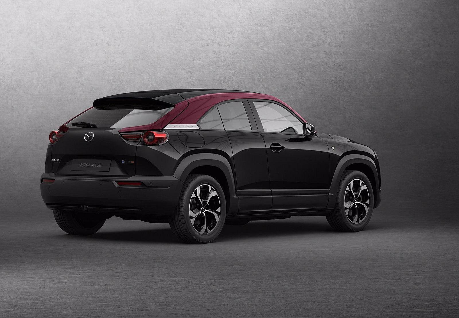 Edição “Edition R” para a EuropaA unidade exposta no stand da Mazda no salão belga é a “Edition R”, uma edição especial que ficará disponível no lançamento do MX-30 e-Skyactiv R-EV. Em termos estéticos, o MX-30 R-EV “Edition R” diferencia-se da versão standard pela tonalidade ‘Maroon Rouge Metallic’ – uma reedição da cor do tejadilho do R360 Coupe, o primeiro veículo de passageiros da Mazda –, complementando o tom preto aplicado à restante carroçaria, cor que também se destaca nos acabamentos interiores.