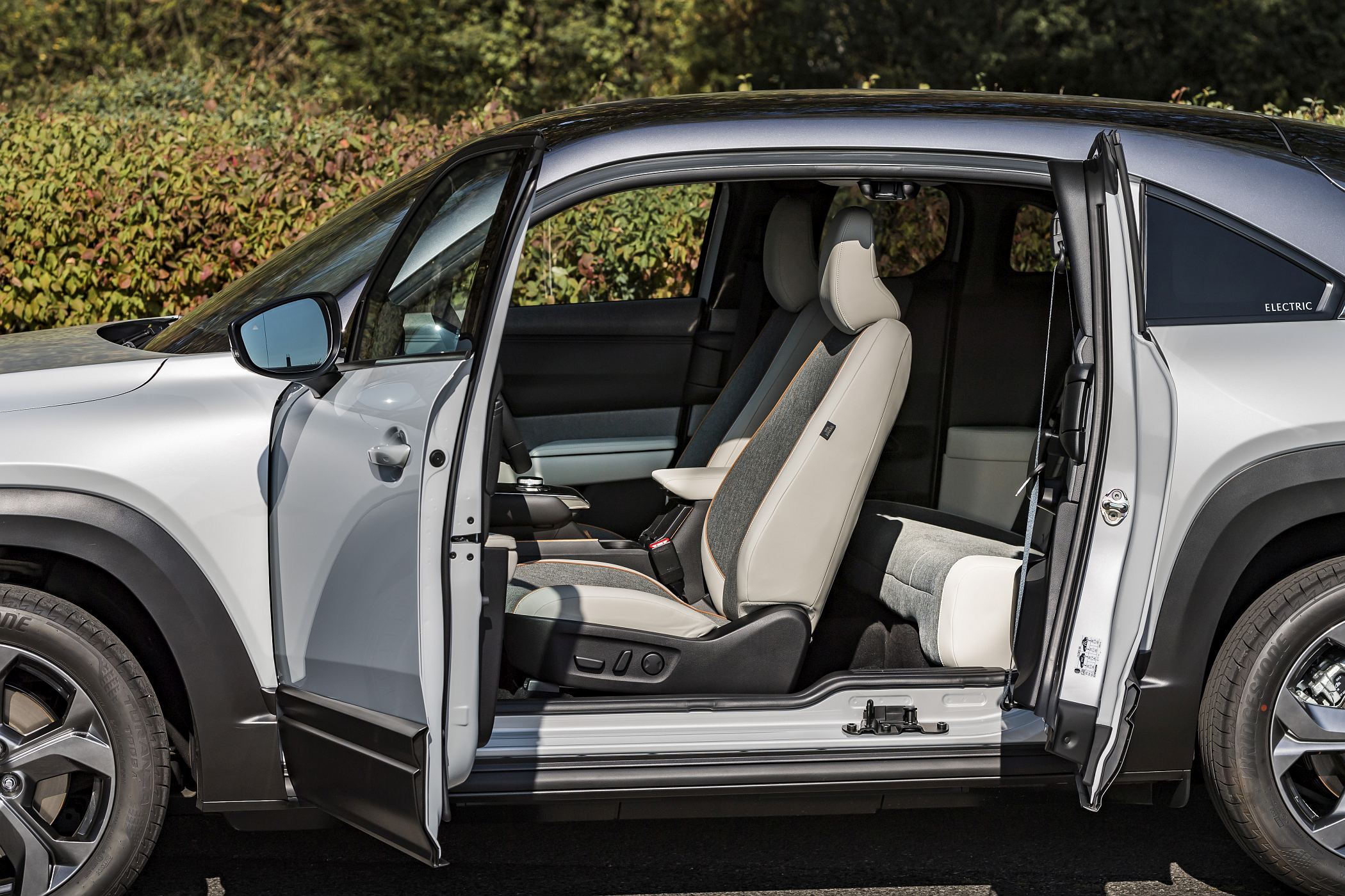 Em complemento aos esquemas de cores interiores Modern Confidence (de base branca) e Industrial Vintage (castanha) disponíveis até à data, o MX-30 de 2022 introduz uma nova especificação Urban Expression, de base preta. Esse novo interior integralmente preto é pontuado por detalhes em cinzento e em branco nos estofos em tecido, do tipo ganga, bem como pela adoção de cortiça castanho-escura na consola e nas pegas e guarnições das portas.