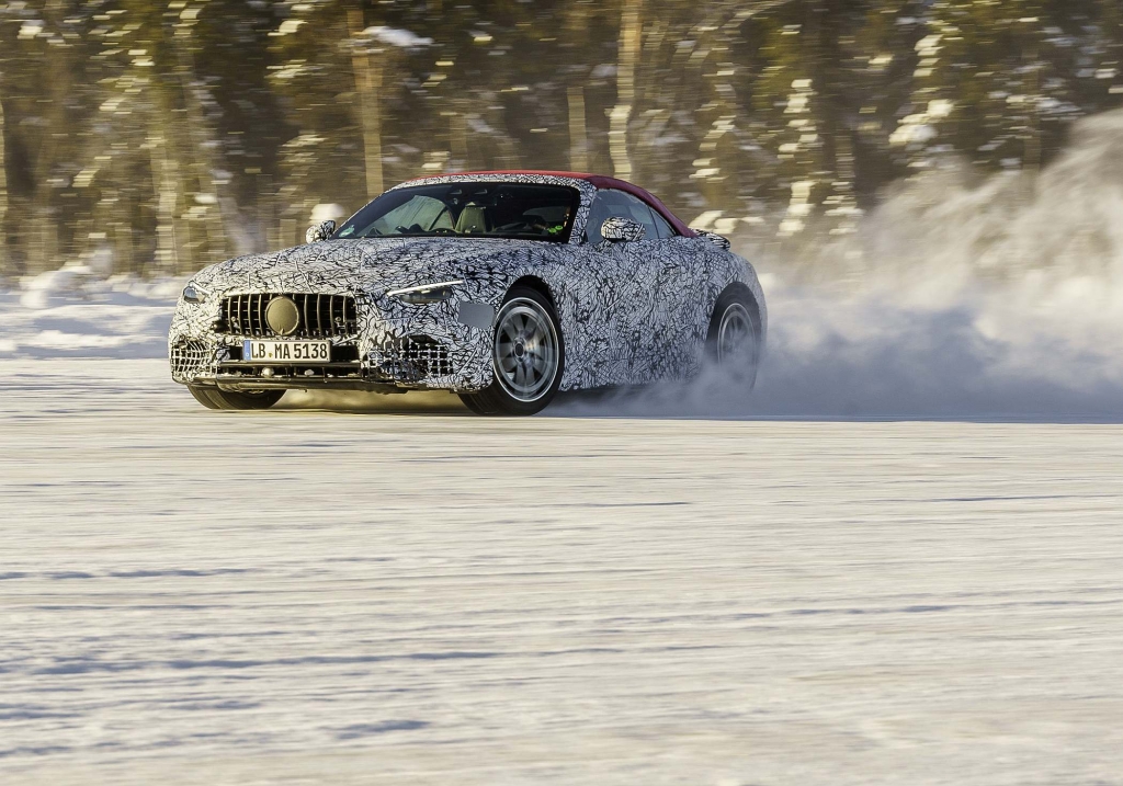 Os ensaios de desenvolvimento final do novo SL têm decorrido na Alemanha (onde a estabilidade a alta velocidade tem sido afinada na autoestrada A81) e na Suécia, local onde os novos carros fazem sempre uma ronda de testes para certificação de sistemas e comportamento em frio extremo.
