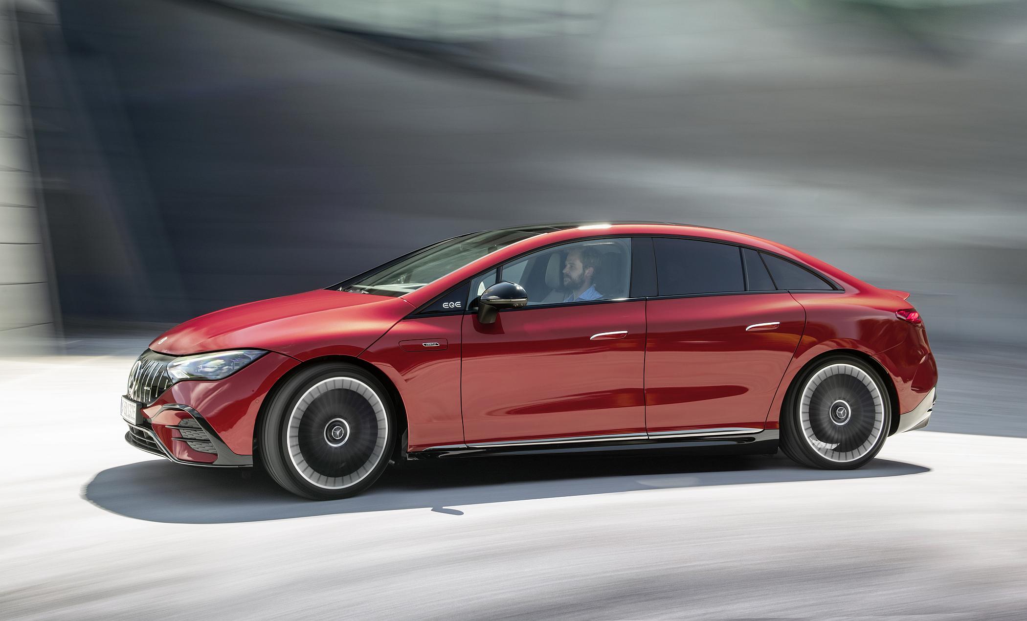 Os dois novos modelos desportivos de luxo são caracterizados como propostas orientadas para o prazer de condução e para as prestações de luxo, graças a soluções de tração integral avançada (eATS) com um motor elétrico por cada eixo, com potências que variam entre os 350 kW/476 CV na versão EQE 43 4MATIC e os 505 kW/687 CV da versão EQE 53 4MATIC+ com o pacote opcional AMG Dynamic Plus, que incrementa a potência ligeiramente. O binário do modelo de entrada é de 858 Nm, enquanto o segundo é de 950 Nm (1000 Nm com o pack AMG Dynamic Plus).