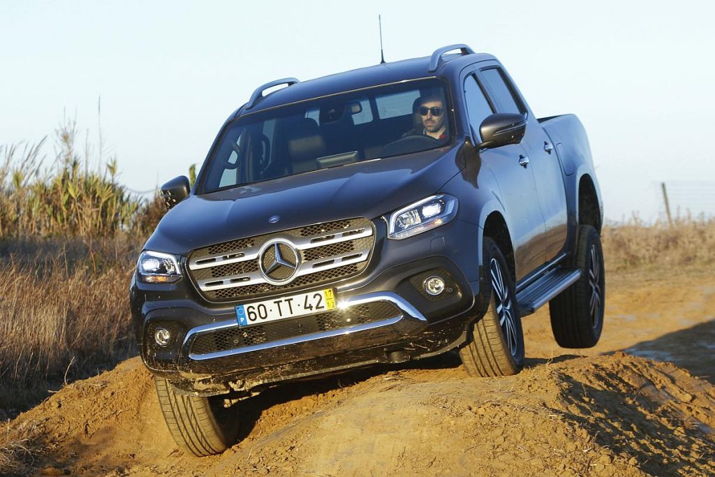 Para esta pick-up, credenciais aventureiras a sério: além da tração integral 4Matic, a Classe X conta com sistemas Downhill Speed Regulation (DSR), que mantém a velocidade de descida nos 8 km/h em inclinações mais íngremes, caixa com redutoras (ativadas a partir de um comando rotativo na base da consola central) e bloqueio de diferencial traseiro.