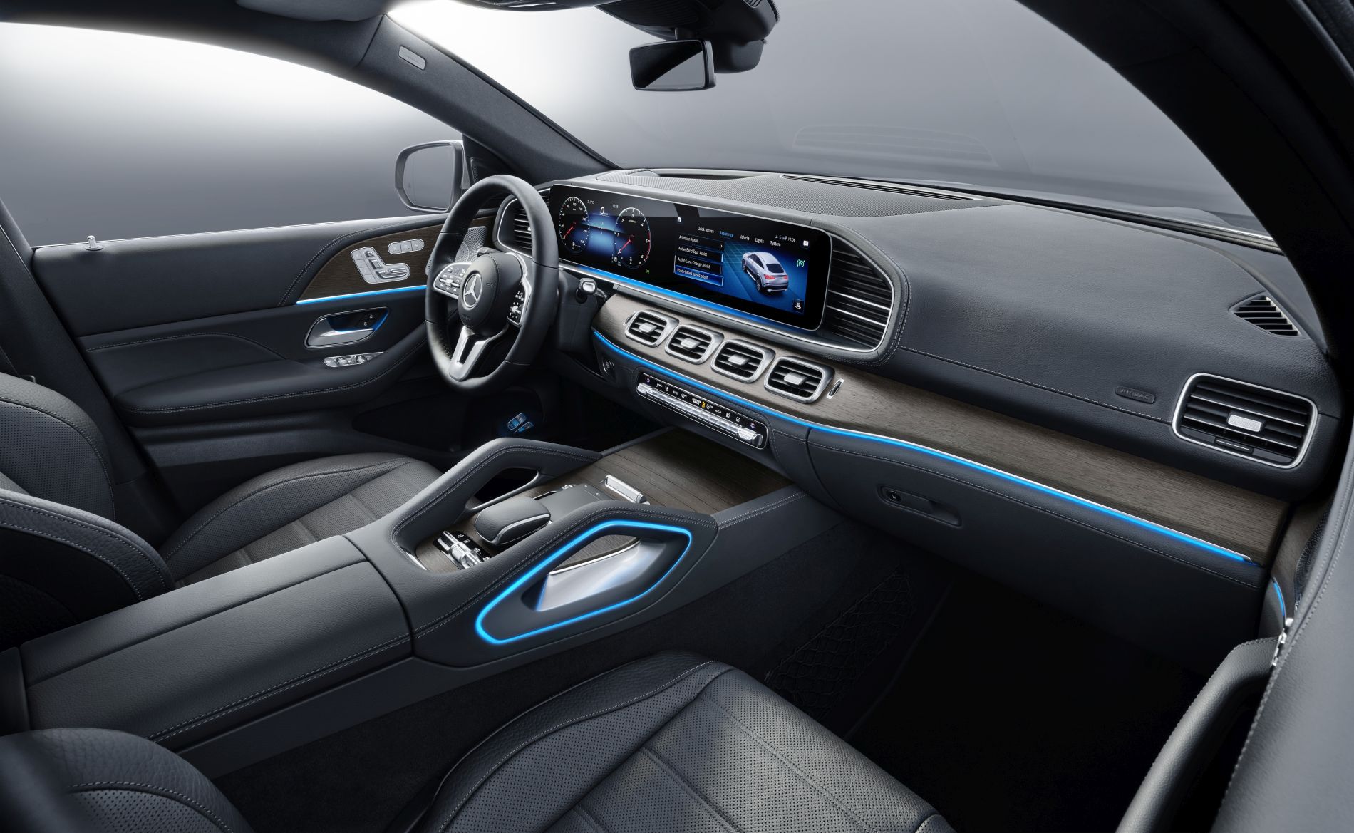 A bordo, o GLE Coupé partilha várias características com outros modelos na nova família SUV Premium. Em destaque evidente está o conjunto de dois ecrãs largos de 12.3 polegadas (31,2 cm), que dão abrigo ao painel de instrumentos e ao sistema MBUX de infoentretenimento, que volta a apostar na interactividade com o condutor graças a comandos por voz, por exemplo. A superfície superior no GLE Coupé é revestida de série em pele sintética ARTICO. O foco na desportividade é proporcionado pelos bancos desportivos de série, com maior apoio lateral e revestimento em pele ARTICO, e o novo volante desportivo revestido em pele Comfort, que é também equipado de série no coupé. Mas, para não se esquecer que é um SUV, tal como no GLE, o Coupé apresenta pegas auxiliares na consola central.