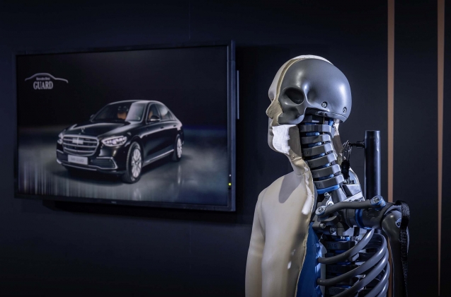 Pensado para situações muito específicas, atendendo a necessidades de segurança muito especiais, este Classe S 680 GUARD 4MATIC conta com uma construção altamente cuidada com recurso a materiais de última geração e a métodos igualmente inovadores para manter a sua resistência em casos de ataque de metralhadoras ou de explosivos. Os testes levados a cabo pela autoridade de testes balísticos alemã (Beschussant Ulm) foram feitos pela primeira vez com a utilização de bonecos de teste fiéis à fisionomia do ser humano (‘biofidelic dummies‘), com construção a imitar osso e tecidos humanos.