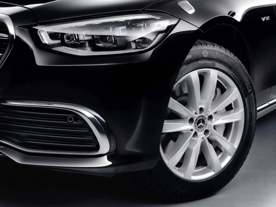 Os pneus Michelin PAX com tecnologia ‘run-flat’ são de série e asseguram que o Classe S GUARD poderá ser conduzido para segurança por uma distância de até 30 quilómetros.