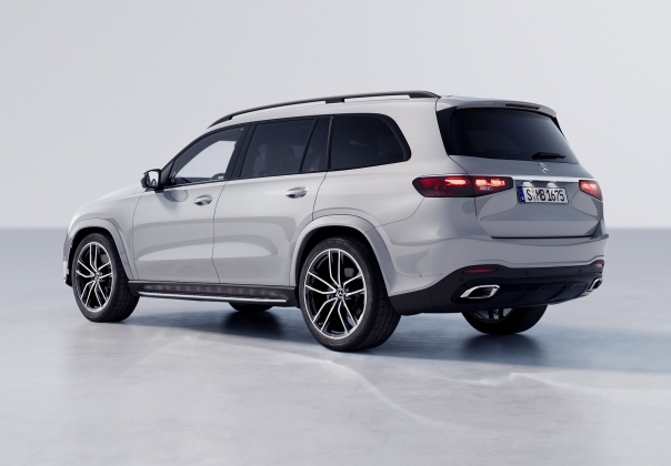 Os mais recentes GLS podem ser distinguidos por uma grelha do radiador diferenciada, com quatro lamelas em acabamento na cor ‘Silver Shadow’. O novo para-choques também é mais marcante, integrando entradas de ar com moldura em preto brilhante. A proteção inferior simulada da carroçaria (equipamento de série) também tem um novo design. Atrás, a característica de destaque é o interior dos farolins com três focos de luz em LED horizontais.