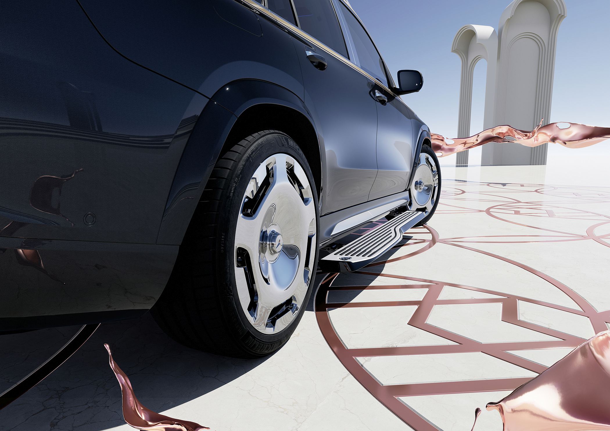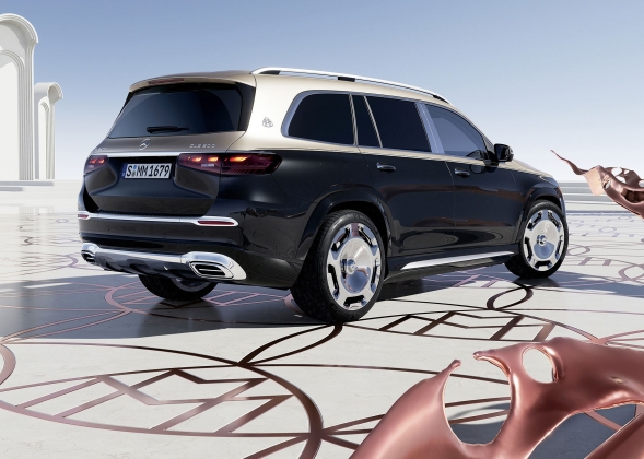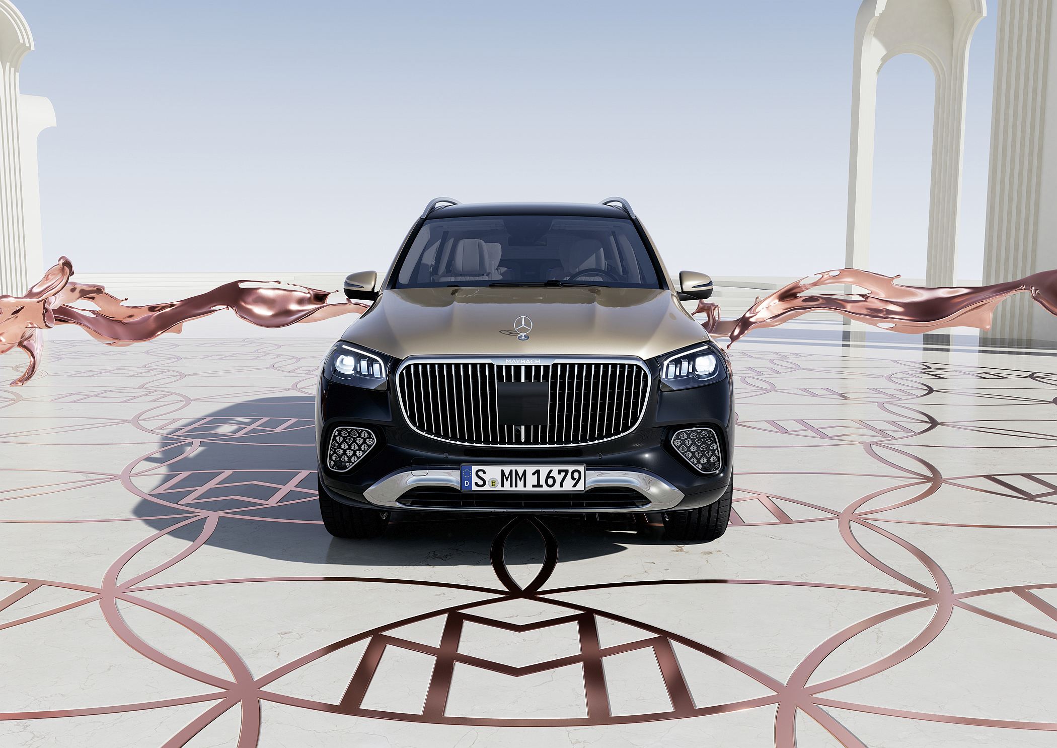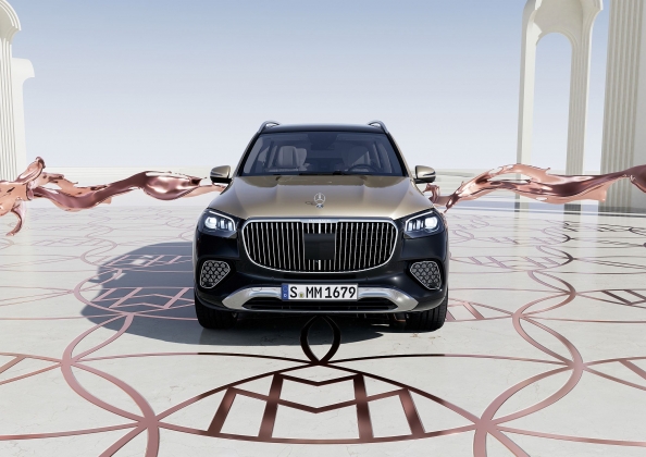 No caso do Maybach, as aletas verticais cromadas e a inscrição “Maybach” são as características distintivas da grelha do radiador. As grelhas das entradas de ar integram um padrão específico da marca e incluem uma moldura cromada. Outro equipamento de série é a iluminação ambiente com projeção animada do padrão Mercedes-Maybach.