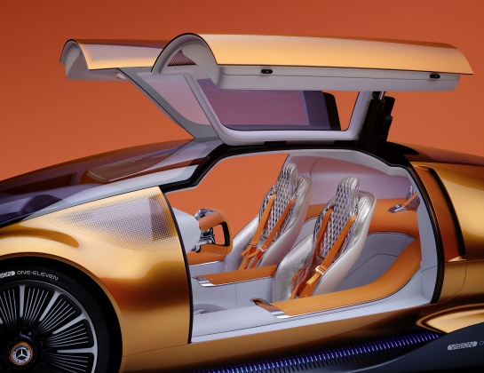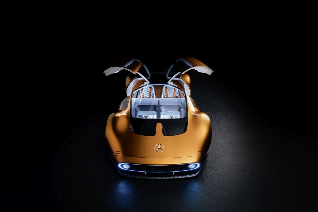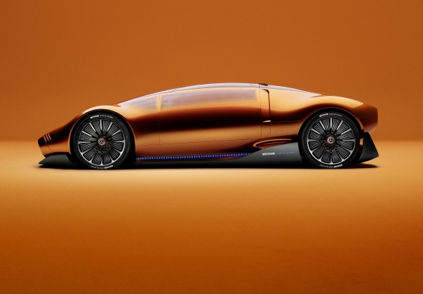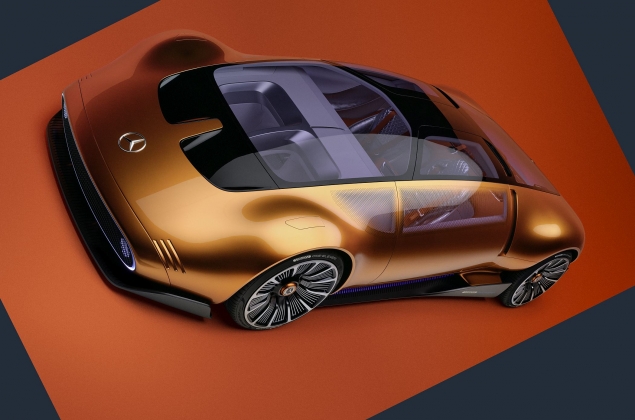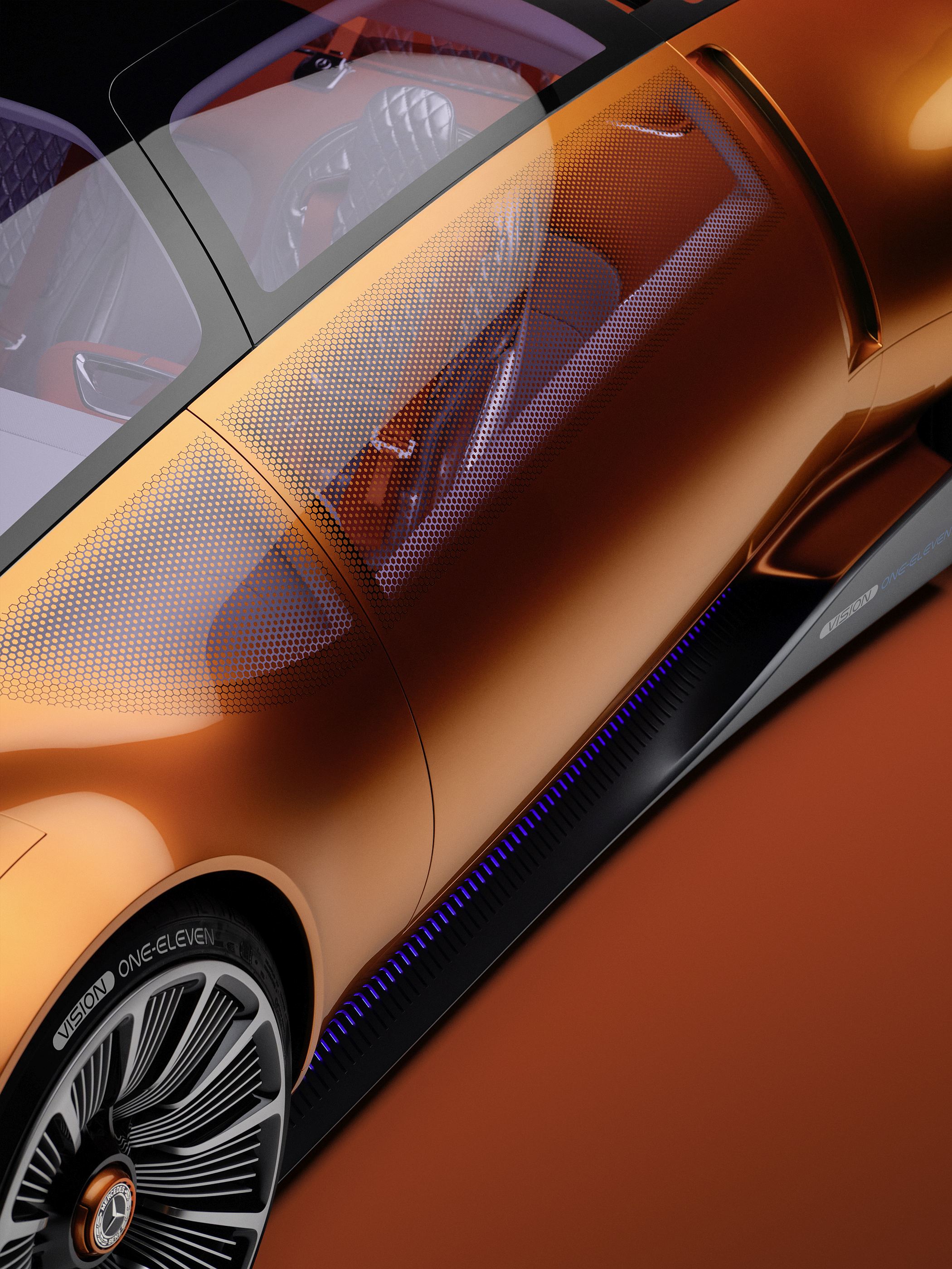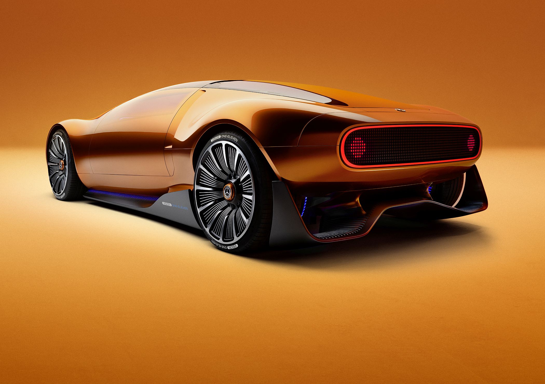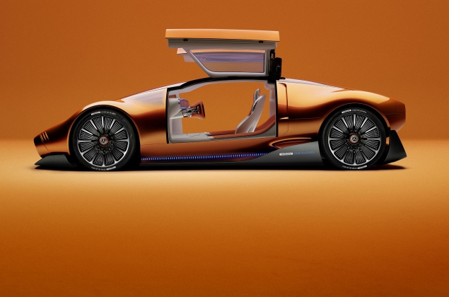 Em termos de design e compactação de elementos, este protótipo conta com formato em cunha, com apenas 1170 mm de altura, numa carroçaria que é demarcada ainda pela pintura em cobre-laranja de efeito especial, noutra alusão ao C 111 mas sem ser uma cópia direta. As portas abrem em estilo ‘asas de gaivota’, enquanto as janelas laterais, opacas por fora, estão camufladas num padrão pixelizado. As cavas das rodas volumosas albergam jantes de grandes dimensões.