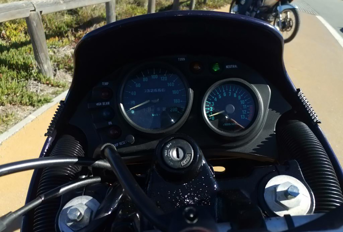 Os piscas frontais já não são originais e partem com facilidade. A “ponteira” de escape tem tendência para apodrecer (tem uma da marca Speed), os travões são apenas suficientes e piora com carga e pendura (estamos no início da década de 90). Os consumos, facilmente abaixo dos 5 litros aos 100, disparam se usarmos o acelerador com vontade, o que é normal uma vez que o binário máximo de cerca de 40 Nm aparece por volta das 7.000 e os quase 50 cv só perto das 8.500!