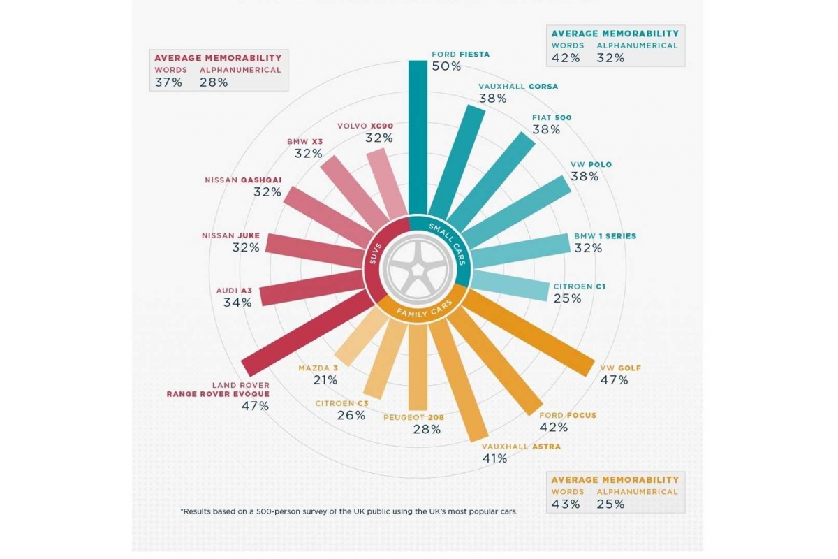 Dentro dos nomes, o estudo permite concluir que os de regiões e localidades (que é o modelo usado pela Seat) são os mais eficazes, embora o pódio dos mais facilmente recordados esteja ocupado por Ford Fiesta, Volkswagen Golf ou Range Rover Evoque.