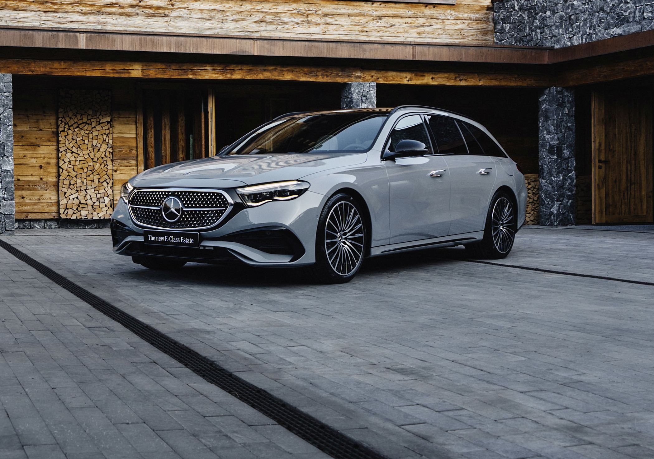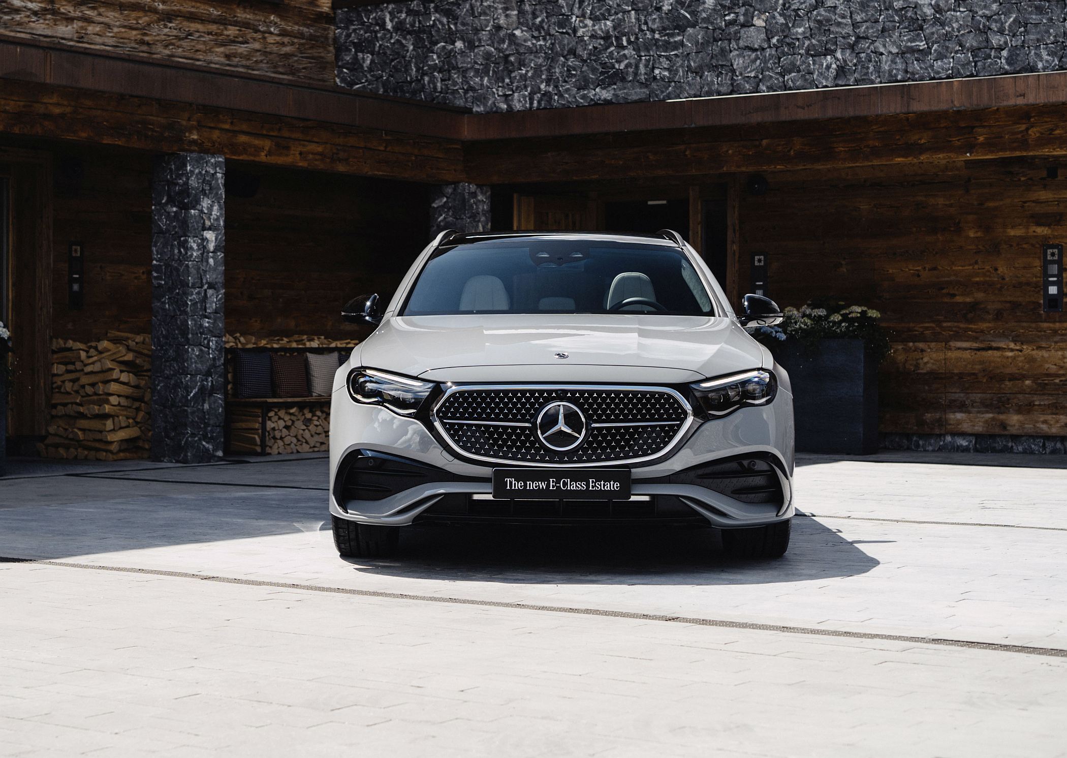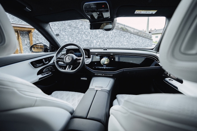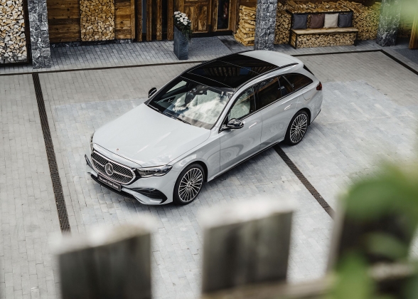 Embora a linha do tejadilho seja mais dinâmica comparativamente à do seu antecessor, o novo Classe E Station revela grande cuidado com a funcionalidade e o elevado volume do compartimento de carga (entre 615 e 1830 litros no caso das variantes não-híbridas e entre 460 e 1675 litros no caso das motorizações híbridas plug-in). A ligação entre a tradição e a modernidade é particularmente evidenciada por uma característica na secção dianteira: uma superfície em forma de painel preto liga a grelha do radiador aos faróis, num elemento que remete para os modelos elétricos da gama EQ. De série, está equipado com faróis LED de alta performance, sendo que a tecnologia Digital Light está disponível como opção, com ou sem função de projeção.