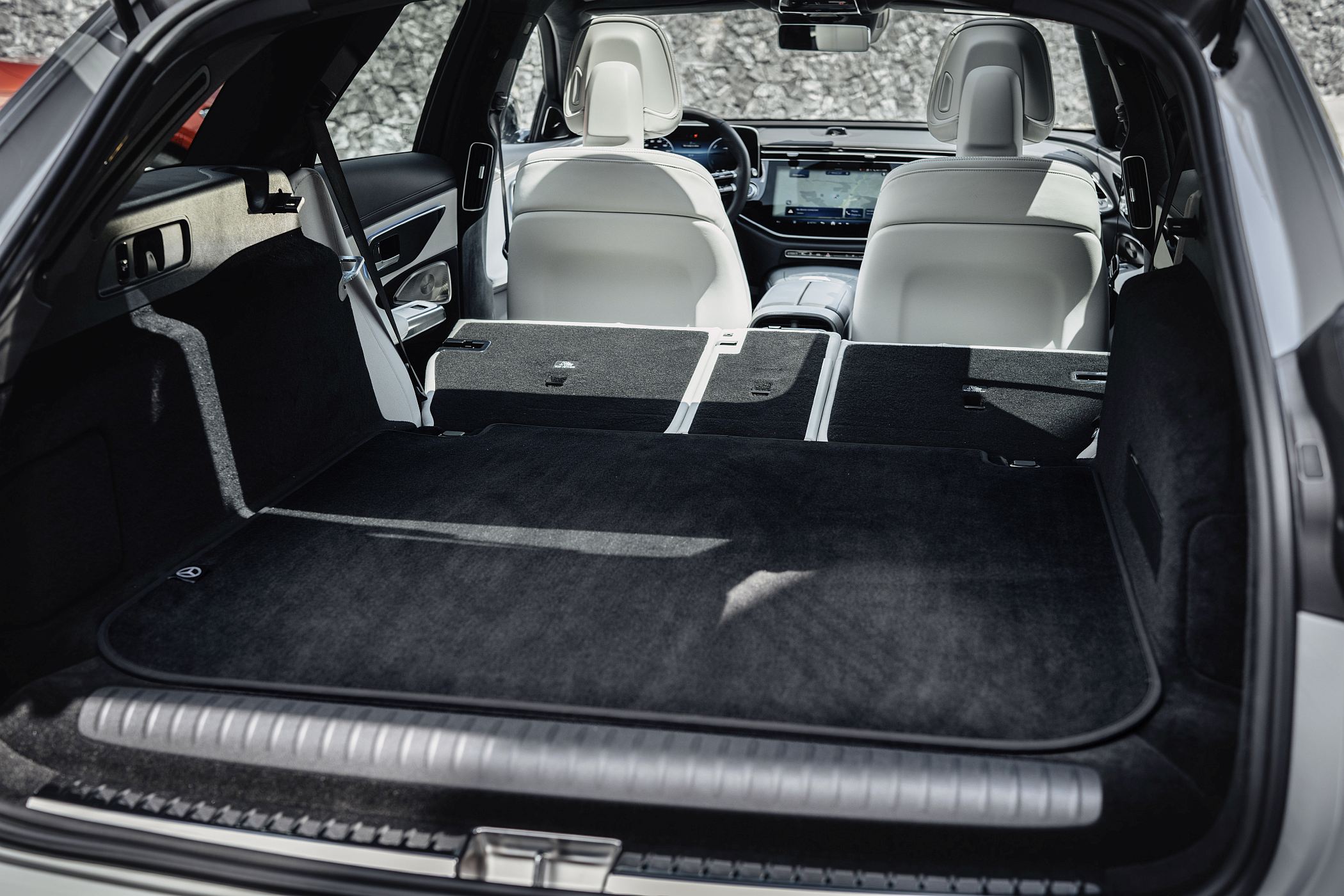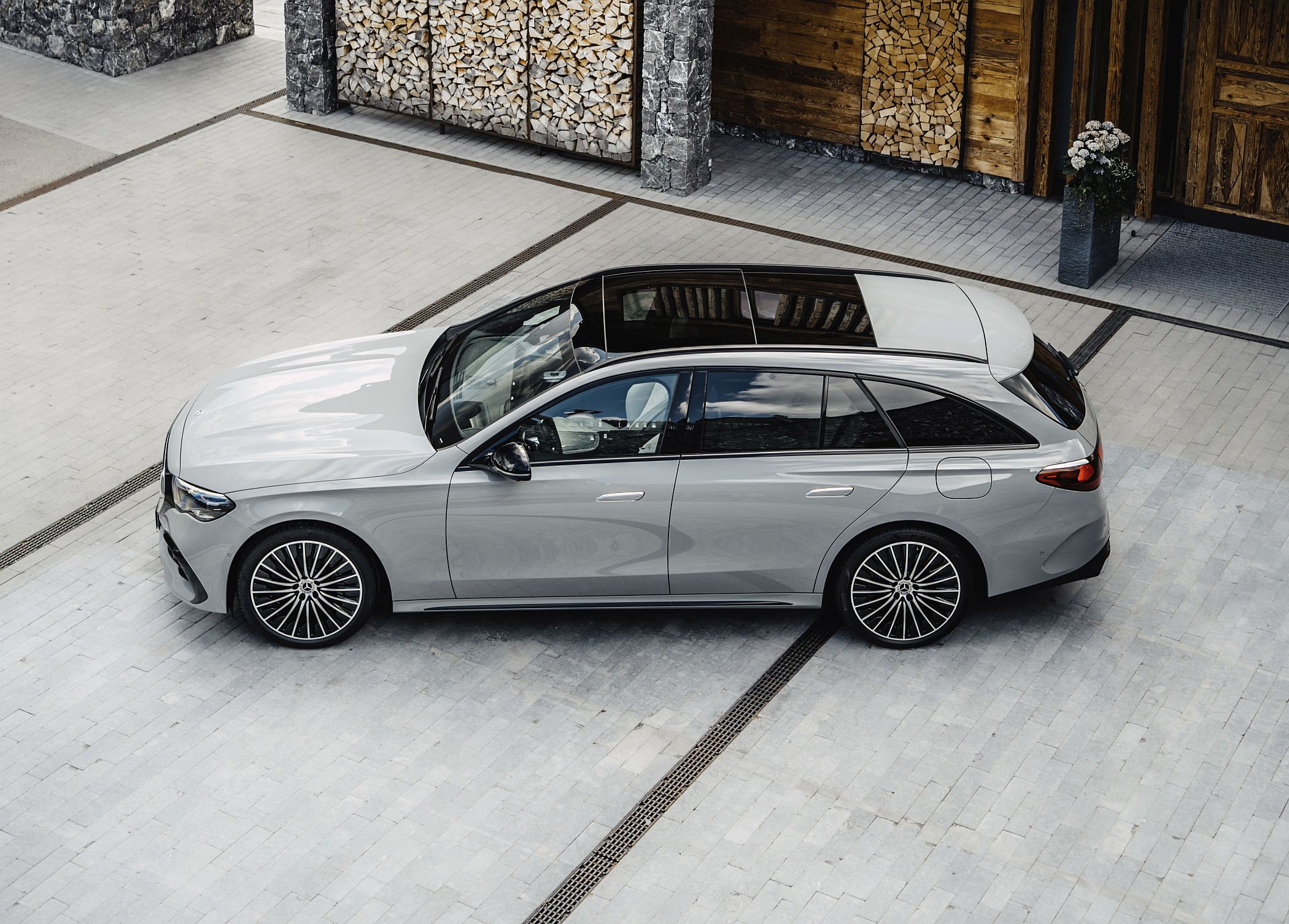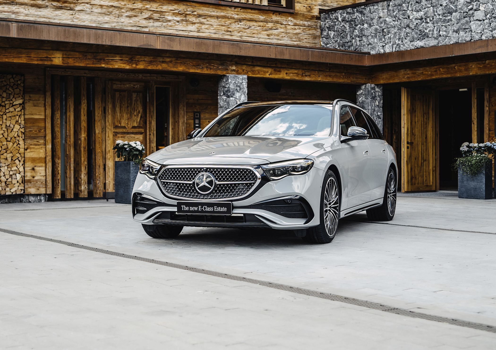 Embora a linha do tejadilho seja mais dinâmica comparativamente à do seu antecessor, o novo Classe E Station revela grande cuidado com a funcionalidade e o elevado volume do compartimento de carga (entre 615 e 1830 litros no caso das variantes não-híbridas e entre 460 e 1675 litros no caso das motorizações híbridas plug-in). A ligação entre a tradição e a modernidade é particularmente evidenciada por uma característica na secção dianteira: uma superfície em forma de painel preto liga a grelha do radiador aos faróis, num elemento que remete para os modelos elétricos da gama EQ. De série, está equipado com faróis LED de alta performance, sendo que a tecnologia Digital Light está disponível como opção, com ou sem função de projeção.