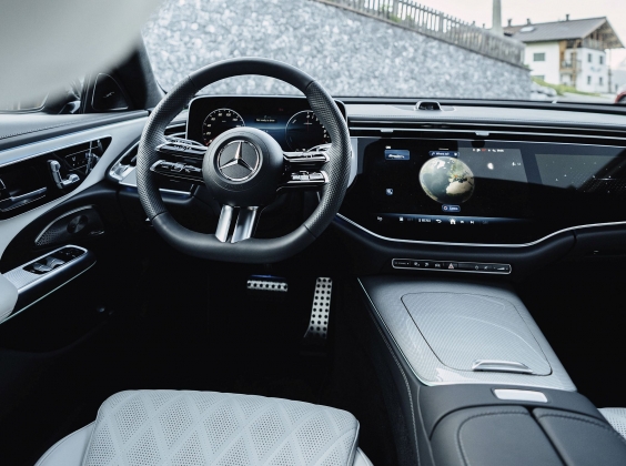 Tecnologia em focoAinda a bordo, mas na área da tecnologia, o novo Classe E repete a filosofia de conectividade avançada com a implementação da evolução do sistema MBUX Superscreen com uma grande superfície de vidro: no caso de estar equipado com um terceiro ecrã para o passageiro dianteiro (opcional), o Classe E Station apresenta uma grande superfície em vidro a cobrir o ecrã tátil central e o ecrã do passageiro dianteiro. O painel de instrumentos, também digital, está visualmente dissociado do MBUX Superscreen.