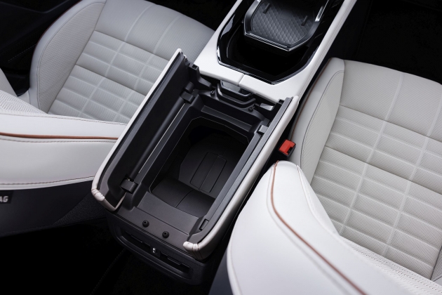 A consola central tira partido de materiais melhorados e requintados, sem esquecer o toque necessário de sustentabilidade: o nível de equipamento Techno de entrada (há ainda os Esprit Alpine e Iconic) conta com revestimentos dos bancos compostos em materiais totalmente reciclados. No Esprit Alpine, para maior desportividade, o revestimento é em combinação de Alcantara e pele, enquanto no nível Iconic há revestimento em pele com tonalidade clara para um sentimento mais amplo até à terceira fila.