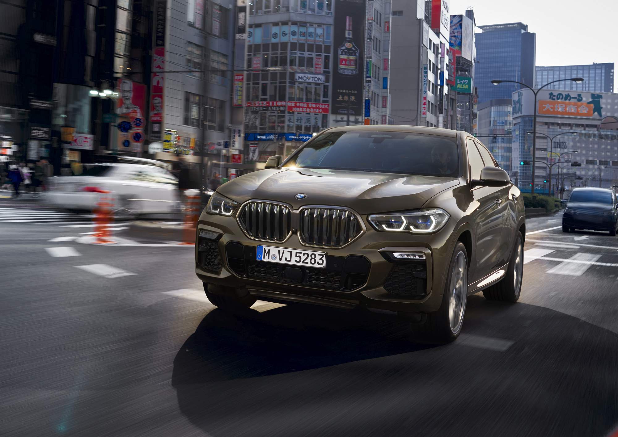 Na dianteira, o novo X6 brande uma grelha com o tradicional ‘rim’ de maiores dimensões, embora sem exagerar como o no caso do X7, podendo receber como opcional uma grelha que se ilumina durante a condução ou nos processos de trancamento e destrancamento do veículo. Em associação à nova grelha, destaque para os faróis mais estilizados, ao passo que o para-choques recebe novas doses de agressividade, com aberturas mais largas.