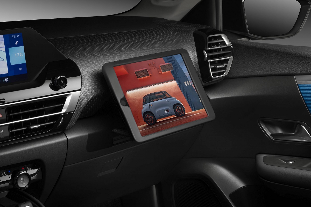Pelo lado do conforto, há diversas camadas desse mesmo efeito, a começar pelas suspensões com batentes hidráulicos progressivos, que melhoram o conforto de rolamento em piso muito degradado. Depois, há ainda os bancos Advanced Comfort, com efeito acolchoado, maior comodidade (incluindo espuma com mais 15 mm de espessura) e apoio reforçado, dando um forte contributo para a redução das vibrações. A acústica foi igualmente melhorada, assim como a facilidade de utilização com vários espaços de arrumação no habitáculo (há 16 no total). Para o passageiro, em novidade absoluta, o Citroën Smart Pad Support, um suporte para tablet que se adequa a dispositivos como o iPad Air 2, o Samusng Tab ou genéricos de 10.5”. Sossegando os mais preocupados com o capítulo da segurança em caso de acidente, o airbag ‘dispara’ por cima do tablet, não afetando a segurança.