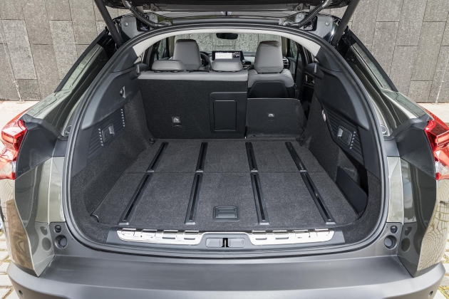 Bem vincada é também a funcionalidade no transporte de grandes bagagens, graças aos 545 litros de capacidade da bagageira e ao formato retagular e baixo, respondendo àquele que foi um dos principais pedidos dos clientes para este novo C5 X. O rebatimento do encosto do banco traseiro amplia a capacidade de carga para 1640 litros, rivalizando pois com as melhores carrinhas e… SUV.Em termos de design, a dianteira é inconfundível, com elementos mais verticais e grupos óticos divididos mas impactantes, destacando-se ainda a linha de cintura elevada de perfil e a traseira com imagem de força e intensidade, graças à assinatura luminosa em LED e ao spoiler proeminente na tampa da bagageira. Um elemento estético simples, mas que adiciona um cunho de desportividade suplementar. As jantes de 19 polegadas sublinham a sua presença robusta, enquanto os 194 mm de distância ao solo apontam para a versatilidade de um crossover – ainda que seja comedido nestas suas ambições.