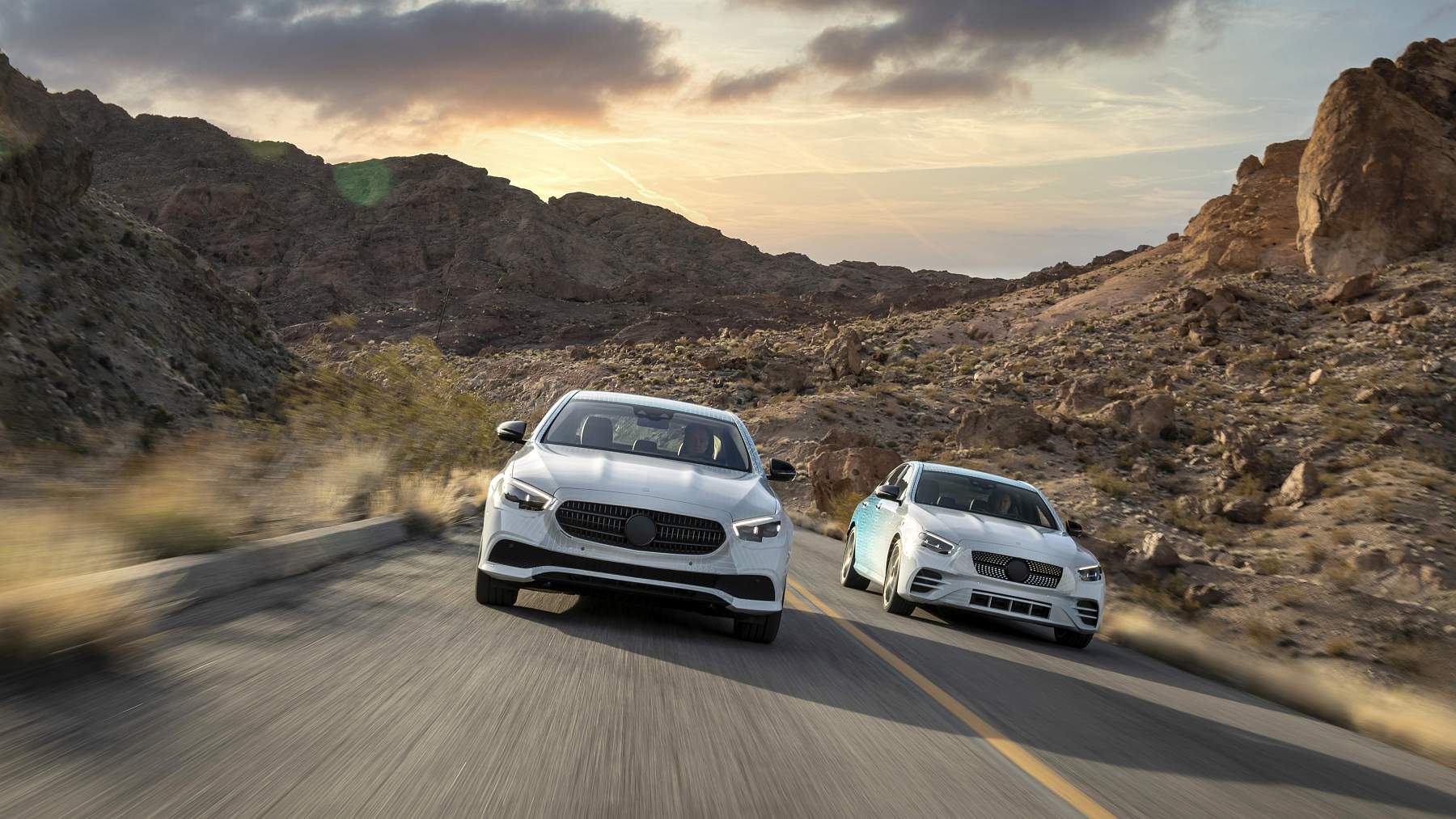 Já no ‘alinhamento’ dos carros de produção, destaque obrigatório para o renovado Classe E, modelo que se fará acompanhar das novas versões híbridas ‘plug-in’ dos CLA e GLA. Nos dois modelos compactos, potência combinada de 218 cv, extraídos de módulo que combina o motor a gasolina de 1,3 litros e uma unidade elétrica, associada a bateria de 15,6 kWh, para uma autonomia de 68 km exclusivamente elétricos.