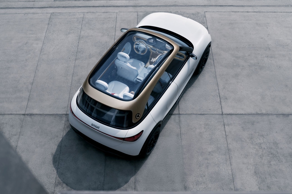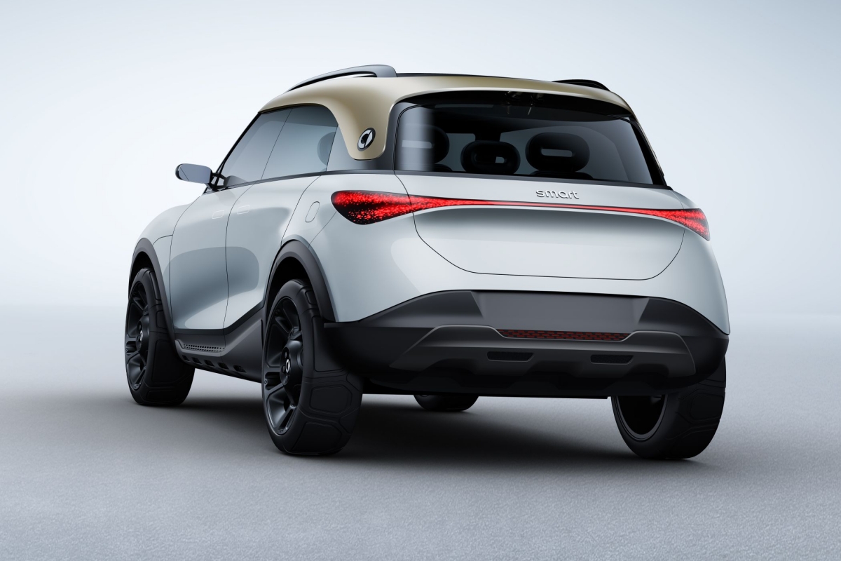 Visualmente, o design exterior revela uma nova filosofia da smart. Com uma pintura em branco brilhante, o corte com a atual geração de modelos não é radical, mas progressivo, o mesmo se aplicando ao interior. Proporções equilibradas, extremidades curtas e um características mais parecidas com as de um SUV são evidentes neste novo concept, destacando-se ainda o grande tejadilho panorâmico em vidro com um anel de luz.