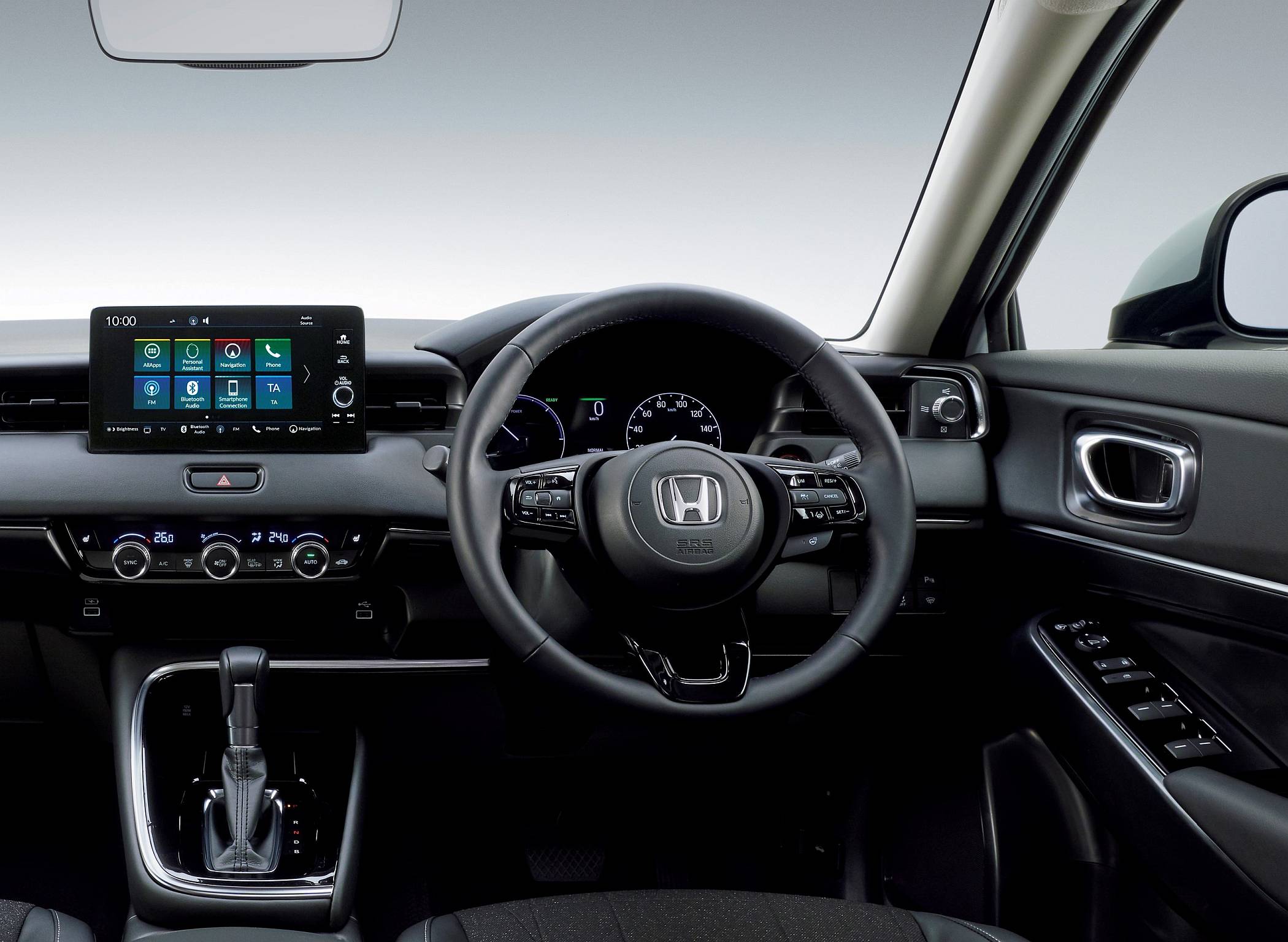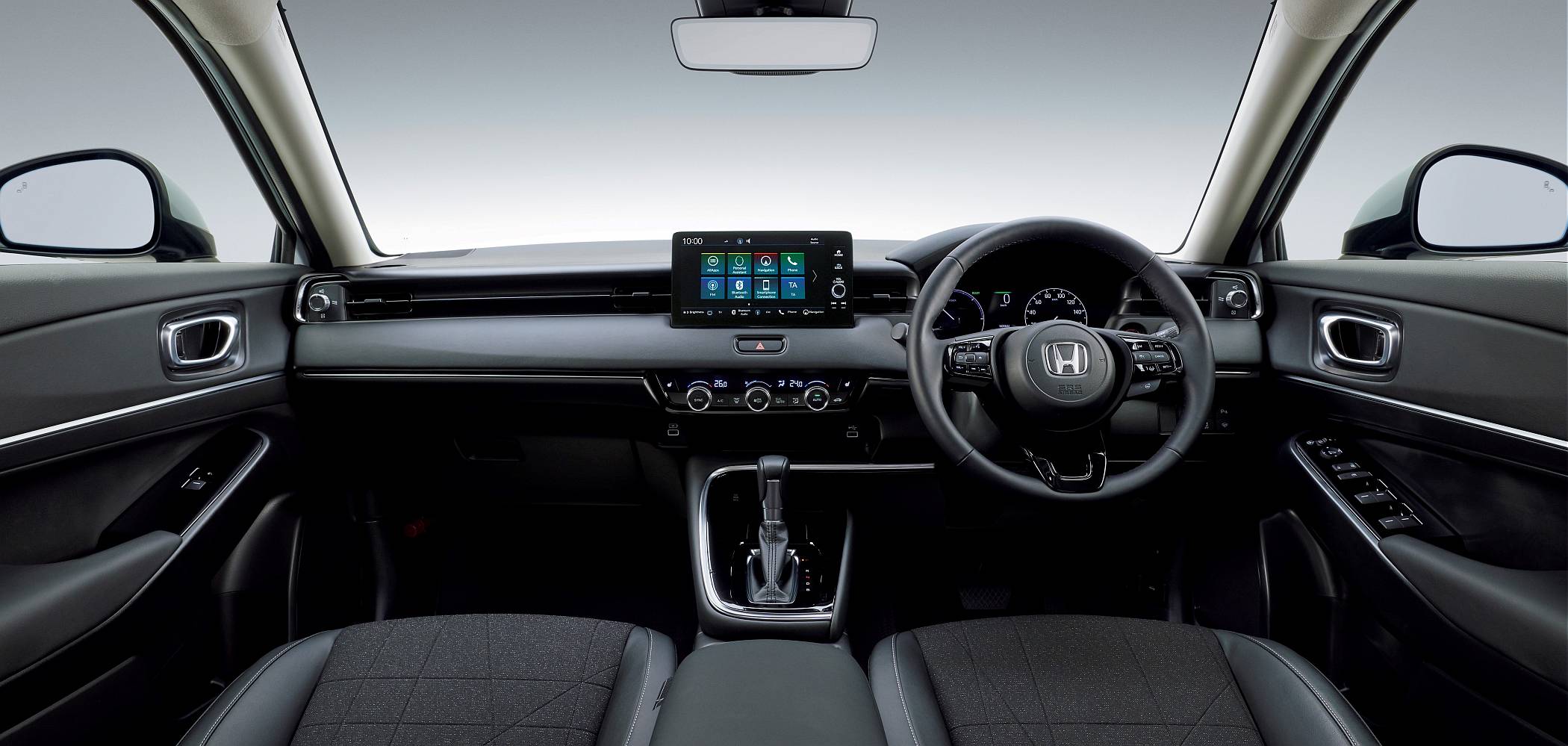 O novo HR-V apresenta, de acordo com a Honda, um interior mais espaçoso e de maior qualidade, graças à acomodação dos diversos componentes híbridos de maneira eficiente, admitindo quatro adultos “de forma confortável”.A Honda indica que o seu novo SUV se procurou obter também um sentimento premium nos materiais e na construção, com uma ideia minimalista que replica a do exterior. O tablier tem uma configuração horizontal, com os elementos posicionados de forma cuidada para uma sensação de espaço e solidez. As saídas de ar da climatização estão agora na zona superior do tablier, com comandos rotativos para o seu controlo nas duas extremidades do tablier.