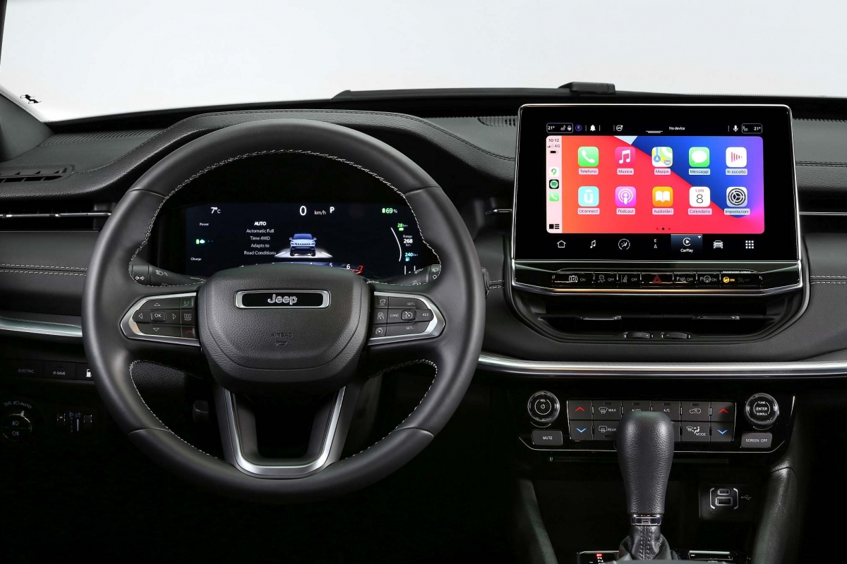 O ecrã alberga o novo sistema de infoentretenimento Uconnect 5 com um processador cinco vezes mais rápido do que o anterior, tendo por base um sistema operativo Android e integração sem fios de smartphones Apple CarPlay e Android Auto, navegação TomTom 3D, comandos por voz e serviços Uconnect.