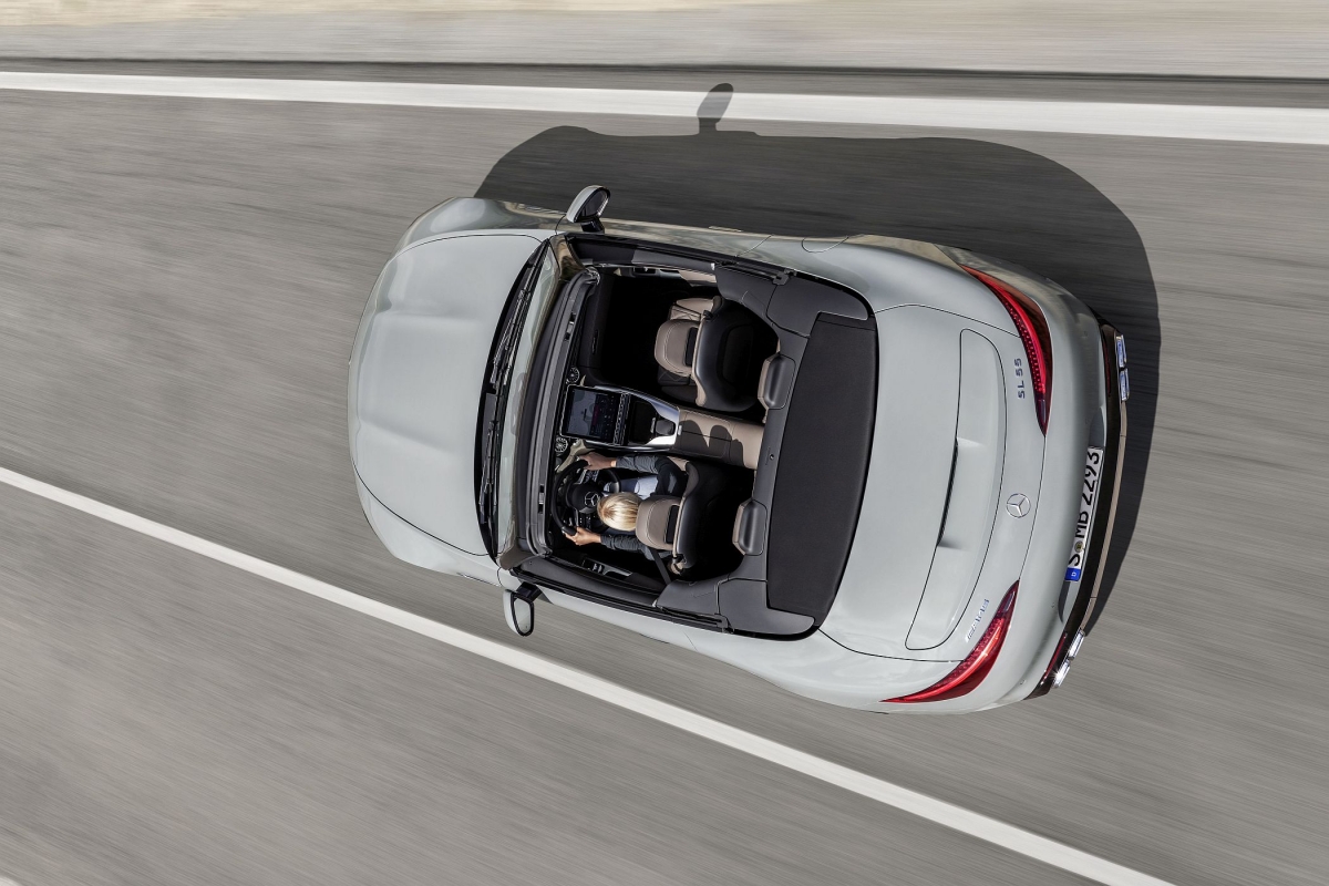 A capota de lona do novo SL foi escolhida face a uma de estilo rígida-retrátil devido ao seu peso mais baixo e possibilidade de redução do centro de gravidade. Com um peso de apenas 21 kg, permite assim um melhor acomodamento na carroçaria, com benefícios dinâmicos, de acordo com os engenheiros da marca alemã. Há ainda ganhos no espaço ocupado quando recolhida na traseira graças à arrumação em ‘Z’. A nova capota tem um desenho de três camadas, para elevada insonorização do habitáculo e robustez. A abertura e o encerramento demora apenas 15 segundos e pode ser feito a velocidades até aos 60 km/h.