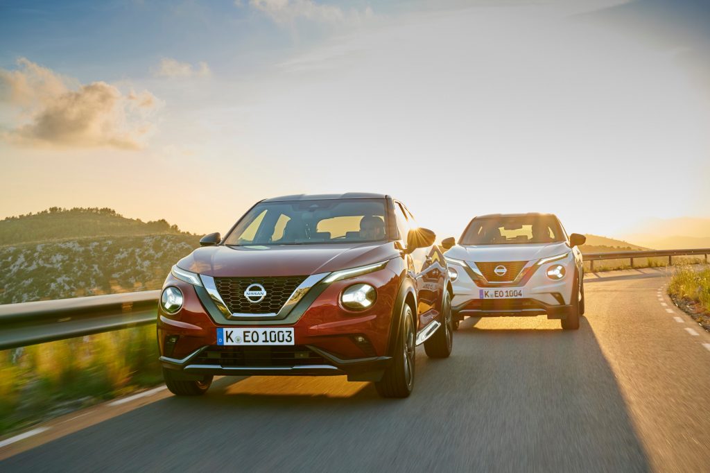 A equipa de design da Nissan procurou dotar o novo SUV de visual sempre irreverente e jovem, mas respondendo também às necessidades de eficiência aerodinâmica. Assim, em destaque na dianteira está a nova imagem da Nissan, com a grelha ‘V-Motion’ a envolver-se com as luzes diurnas em LED na parte superior e a iluminação principal (também em LED, de série) na parte inferior e com uma assinatura em ‘Y’, prosseguindo assim com a tendência de separação nos grupos óticos, algo que no primeiro Juke era quase uma exclusividade e que hoje se aplica também noutros modelos como o Hyundai Kauai ou no Skoda Kamiq.