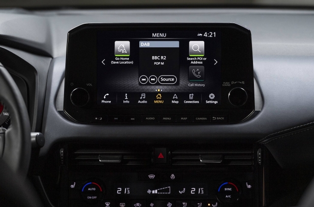 Na conectividade, o Qashqai oferece um novo sistema de infoentretenimento com um portefólio amplo de serviços conectados, incluindo a integração simplificada de smartphones, Wi-Fi no automóvel para até sete dispositivos e a NissanConnect Services, uma aplicação dedicada com a qual o proprietário pode interagir e monitorizar remotamente o seu veículo. O sistema assenta num ecrã de 9.0”, permitindo ainda compatibilidade com os sistemas Android Auto e Apple CarPlay (este último sem fios).