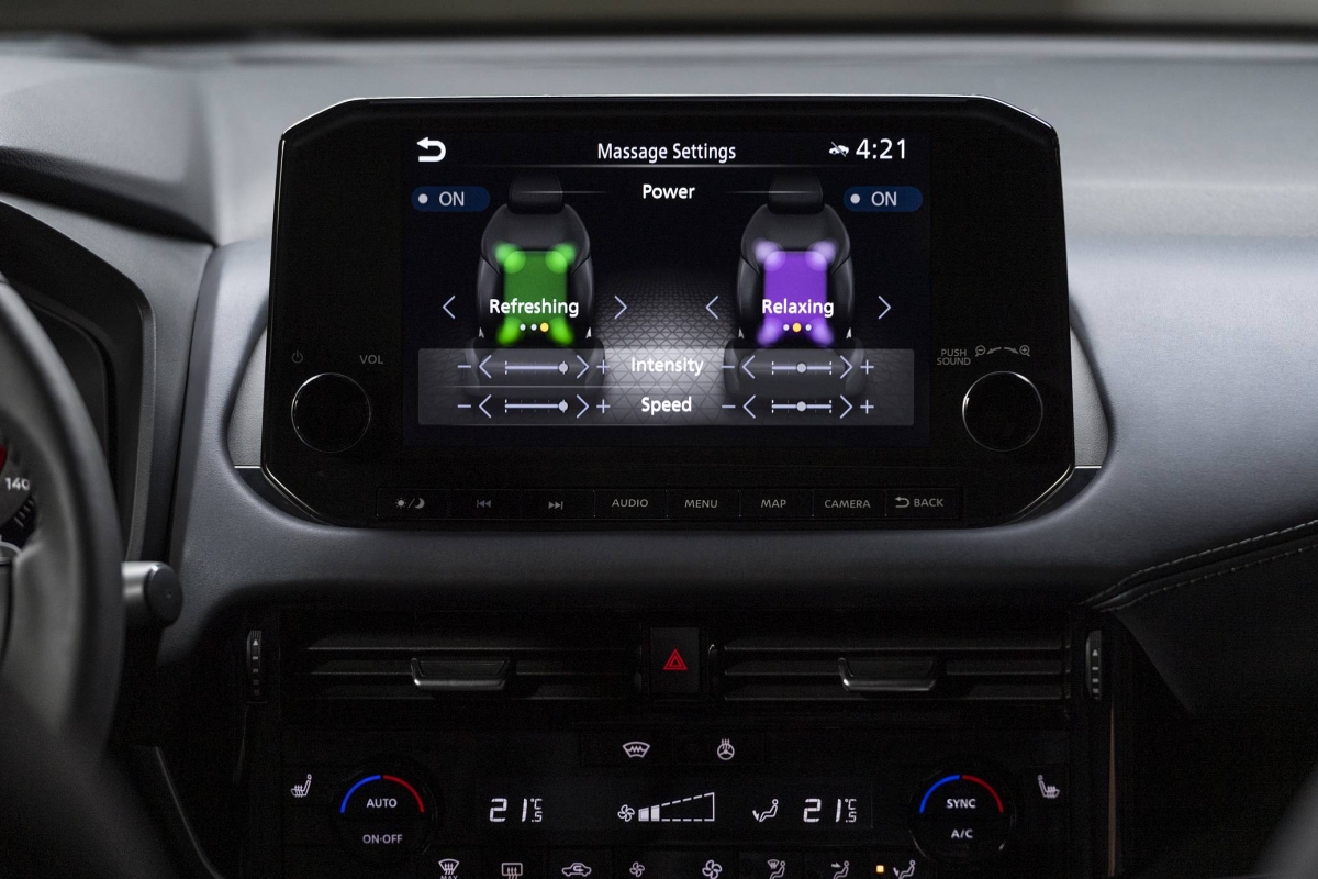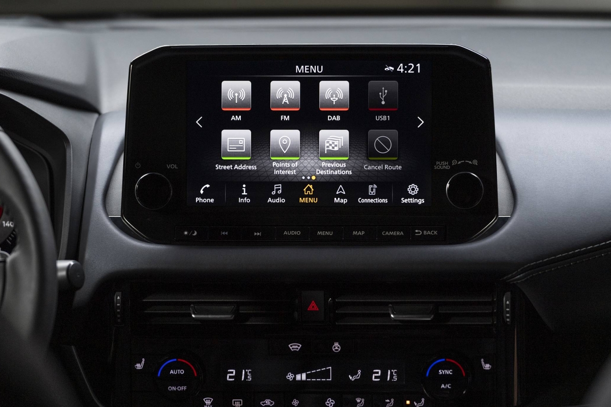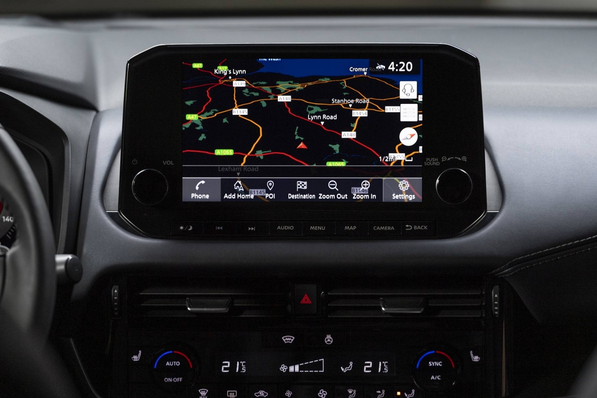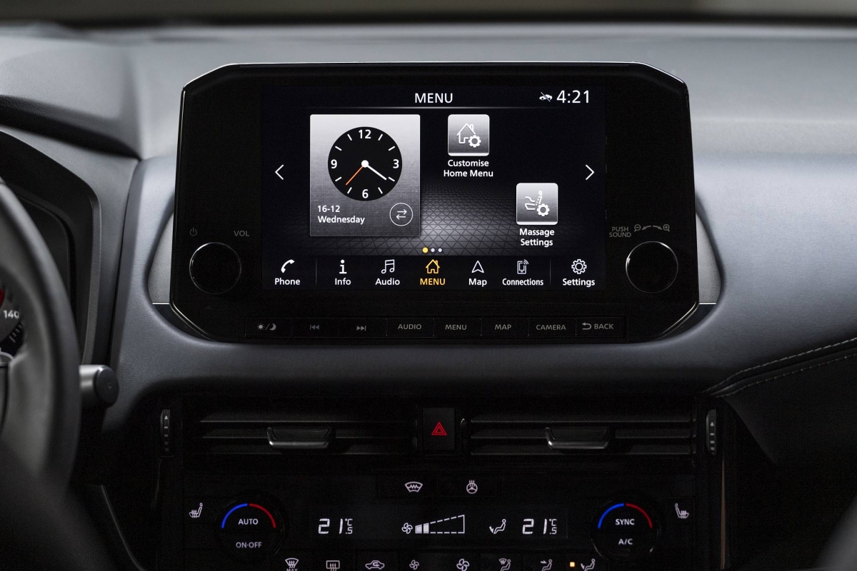 A instrumentação passa a recorrer um ecrã TFT de 12.3 polegadas, totalmente digital e configurável, mais completo em termos de informações da navegação, entretenimento, trânsito ou do veículo/viagem, tudo controlado a partir de um interruptor tátil no volante. Uma textura de vidro esculpido tradicional “Kiriko” é também acrescentada ao fundo digital do TFT, numa alusão ao ADN japonês da Nissan. Além disso, passa a dispor de sistema Head-Up Display de 10.8 polegadas, com as principais informações de navegação, assistência ao condutor e de estrada são projetadas no para-brisas, dentro da linha de visão do condutor.