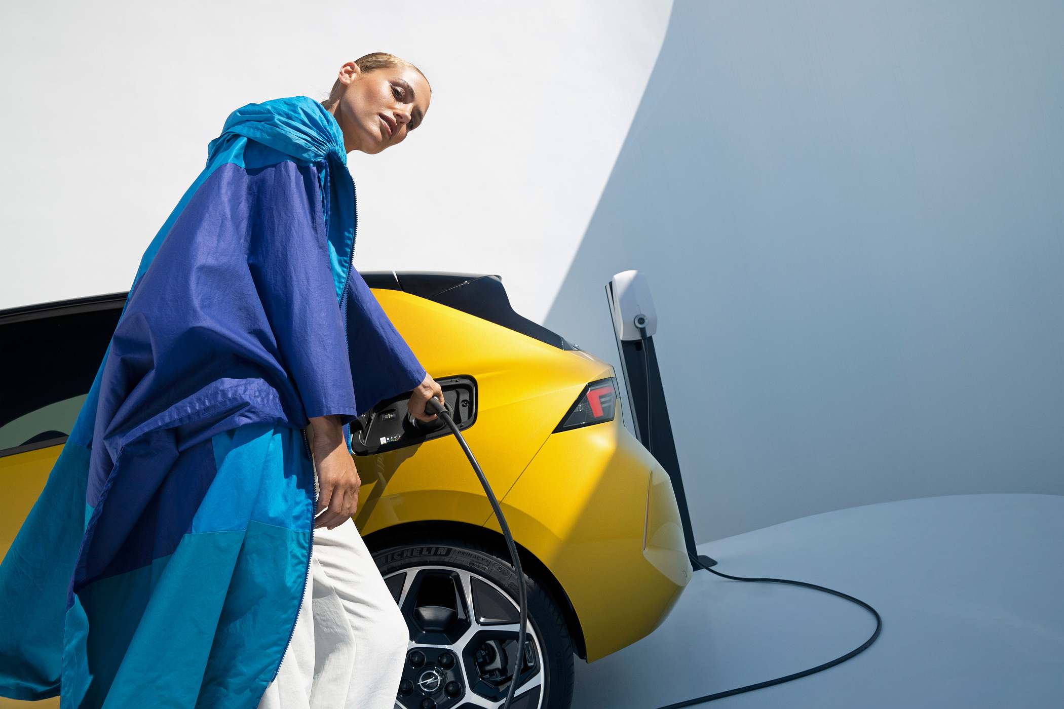 Na traseira, o logótipo Opel está colocado ao centro, destacando-se ainda a luz de travão superior verticalmente alinhada e os farolins traseiros (com tecnologia LED de baixo consumo energético, tal como a restante iluminação exterior). O emblema do relâmpago funciona, também, como manípulo de abertura para a porta traseira, produzida num inovador material compósito de última geração.
