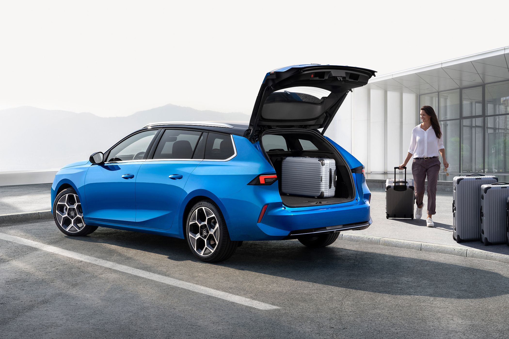 Com as costas dos bancos traseiros em posição normal, a bagageira do novo Astra Sports Tourer oferece 608 litros de espaço de arrumação útil e um máximo de 1634 litros com as costas dos bancos traseiros rebatidas. Além do rebatimento assimétrico (40/20/40) das costas dos bancos traseiros, de série em todas as versões, o piso apresenta-se completamente plano. A capacidade da bagageira decai ligeiramente no caso dos modelos híbridos, devido ao alojamento da bateria de iões de lítio sob o piso – nestes, a carga útil chega aos 548 e 1574 litros em posição normal e com as costas rebatidas, respetivamente.