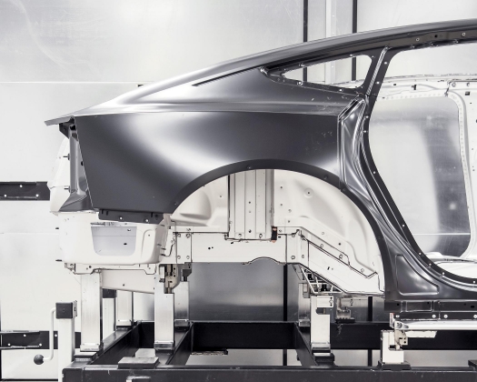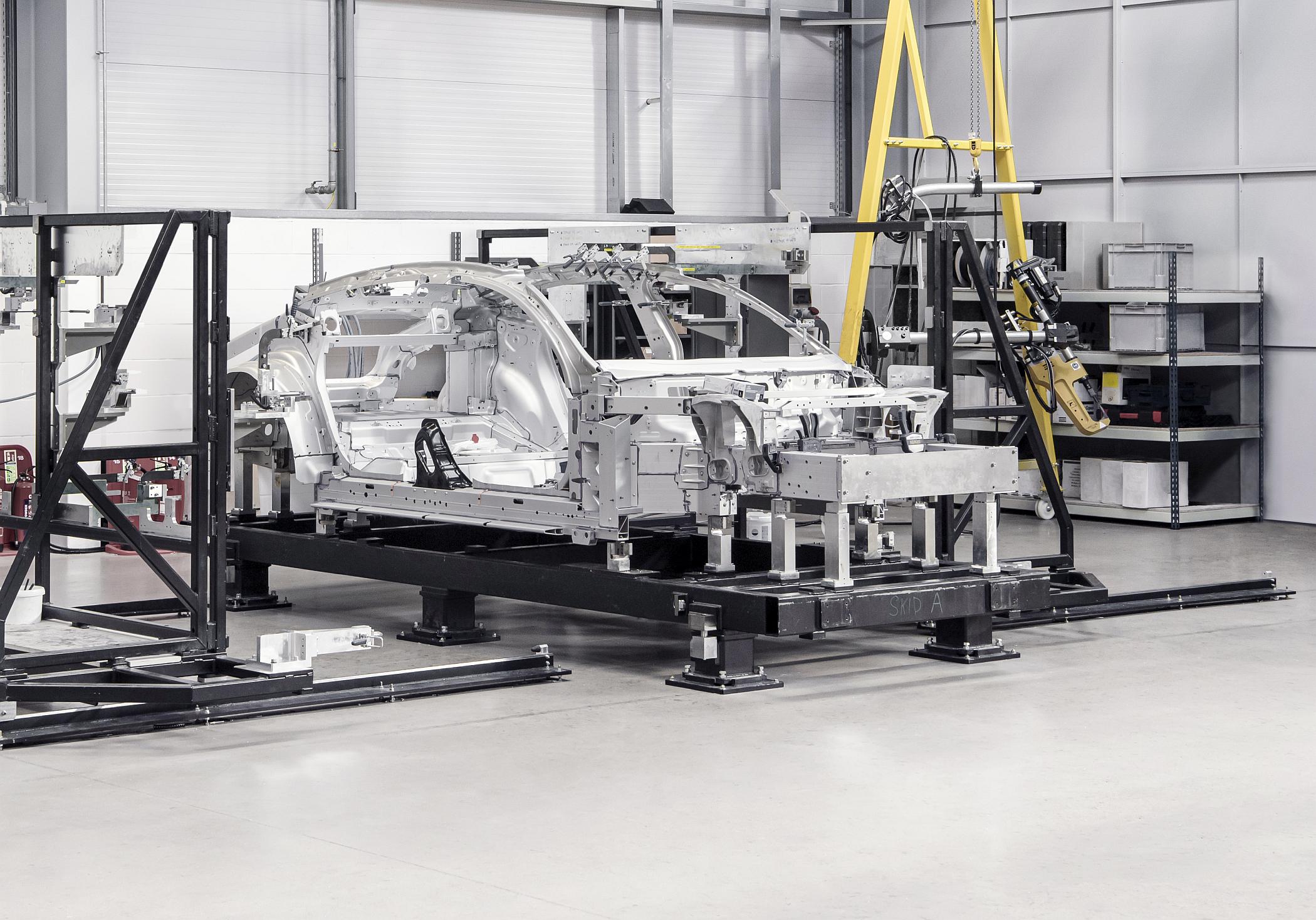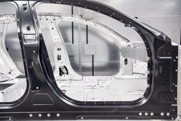 Este desportivo de quatro portas contará com esta nova solução para a conceção da sua estrutura, sendo apresentada como uma plataforma de baixo peso e altamente rígida, oferecendo vantagens em termos de performance e ambientais. Fundir as principais partes da estrutura numa única peça de alumínio reduz o peso, o que, por sua vez, melhora a eficiência energética aumentando a autonomia do automóvel.