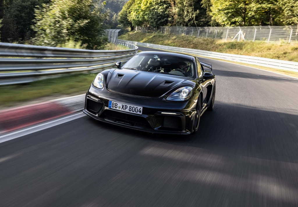 O piloto de desenvolvimento e embaixador da marca, Jörg Bergmeister, realizou uma volta de 20.832 quilómetros ao circuito alemão de Nürburgring Nordschleife em 7m09,300s num automóvel ligeiramente camuflado, enquanto a volta ligeiramente mais curta de 20,6 km, que servia anteriormente como referência, foi cumprida em 7m04,511s, sendo 23,6 segundos mais rápido que o seu irmão mais pequeno, o 718 Cayman GT4.