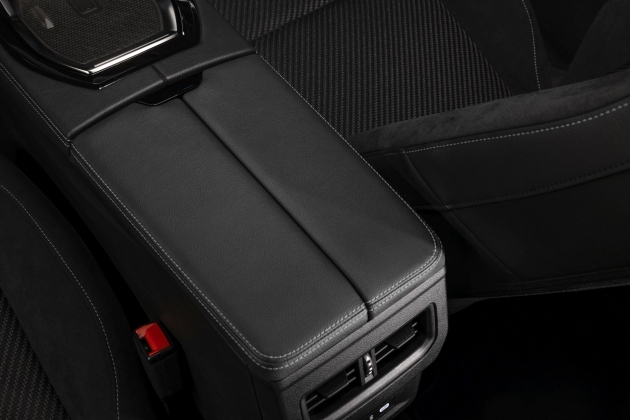 O espaço livre ganho na consola central permitiu integrar um apoio de braço com acabamento de grão fino agradável ao toque, apoiado numa robusta estrutura cromada acetinada, que pode deslizar para trás e para a frente com inspiração no mundo da aeronáutica e da fina relojoaria. Nesse mesmo apoio de braço está um suporte para smartphone do condutor.