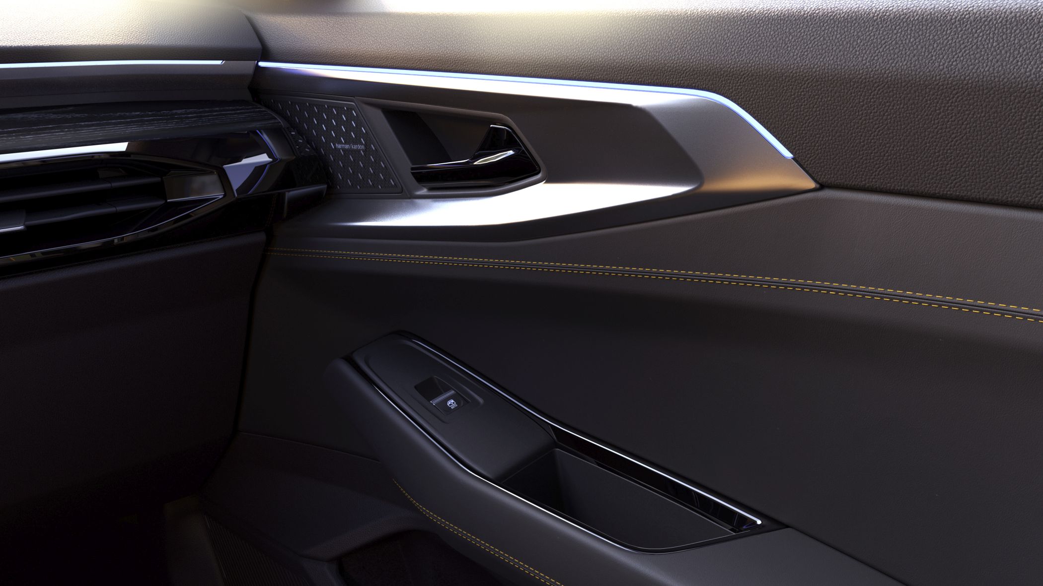 Sem igualar a oferta de alguns dos rivais, o volante é mais compacto e tem um formato ligeiramente quadrado, enquanto a iluminação ambiente ‘Living Lights’ ambiciona oferecer maior conforto de viagem em termos de luz a bordo. A impressão de espaço a bordo é maximizada graças ao tejadilho panorâmico, disponível como opção a partir do nível de equipamento Techno. O teto panorâmico pintado está equipado com uma cortina para-sol elétrica para melhor conforto térmico no verão.
