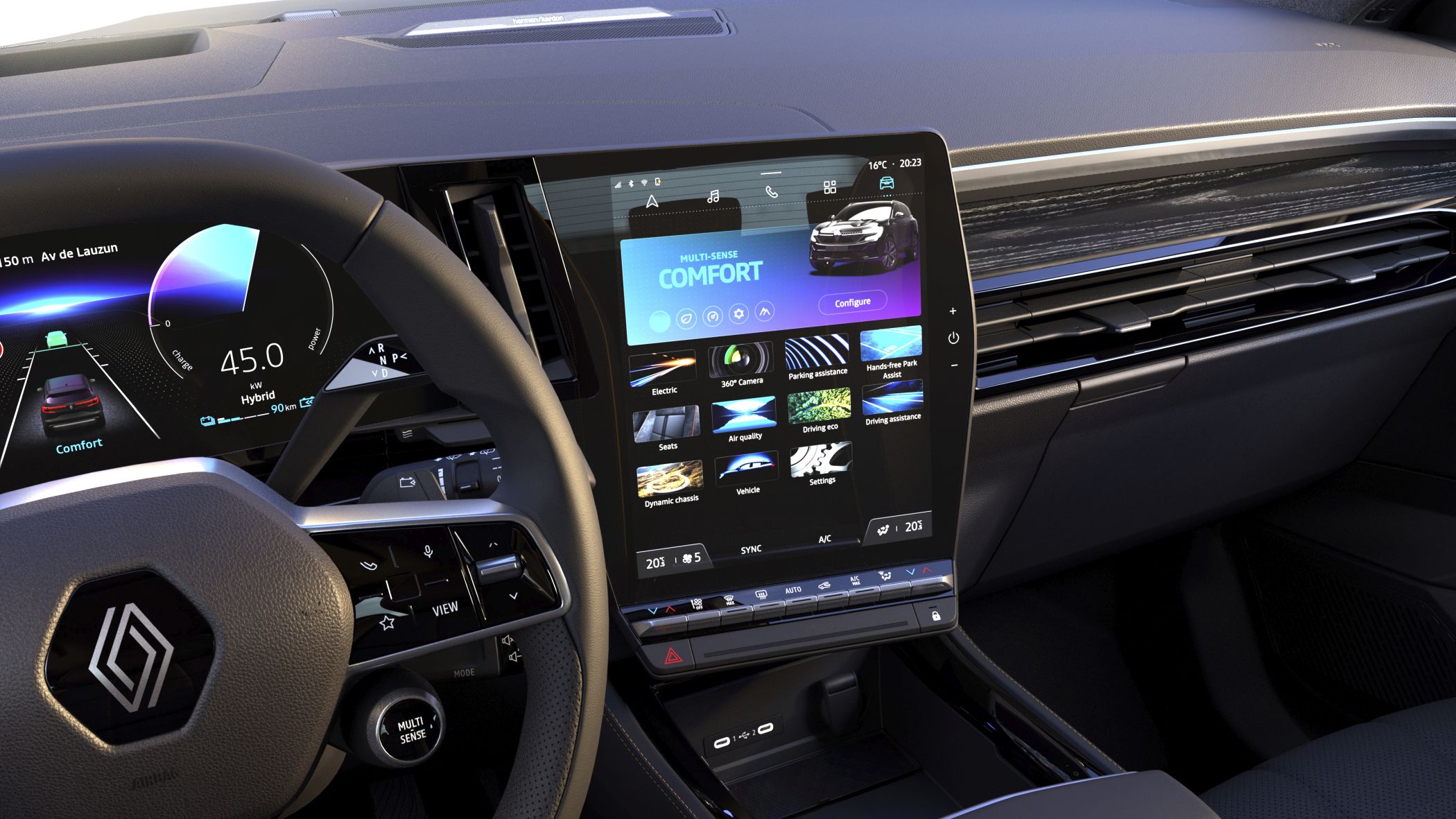 O painel de instrumentos digital tem uma dimensão de 12.3 polegadas (1920×720 pixels) e o ecrã central agregado mede 12 polegadas (1250×1562 pixels), não faltando ainda a projeção num head-up display de 9.3 polegadas. Porém, nos modelos de entrada, a dimensão dos ecrãs é mais reduzida: a versão de acesso tem um ecrã multimédia com 9”, embora ambos os ecrãs disponham das mesmas especificações técnicas – tecnologia TFT LCD IP e resolução HD com 167 pixels por polegada.