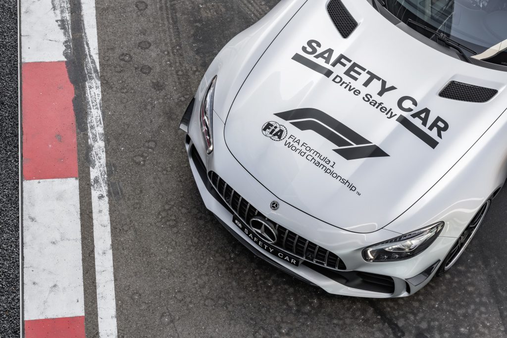 Para 2018 e para coroar esses 20 anos de ligação da Mercedes-AMG à Fórmula 1, a marca de Affaltberbach vai introduzir o GT R como safety car para utilização nas corridas, com motor V8 bi-turbo de 585 CV de potência máxima que lhe permitem ainda atingir os 318 km/h de velocidade de ponta e acelerar dos zero aos 100 km/h em 3,6 segundos.