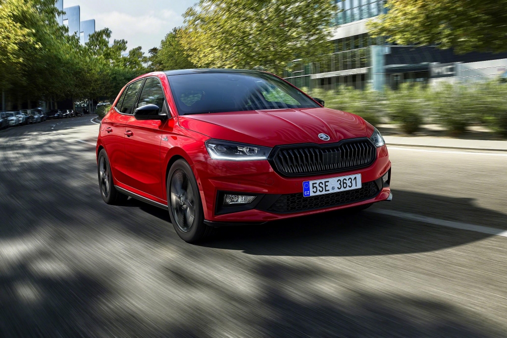 A bordo, há ainda elementos de série como os bancos desportivos, instrumentação digital Virtual Cockpit de 10.12 polegadas (personalizável) com fundo mais dinâmico, volante desportivo multifunções, num ambiente que é predominantemente preto, mas com as já referidas partes em vermelho e embelezamentos em carbono. Os pedais também têm uma aparência em alumínio, ao passo que as soleiras das portas apresentam o logótipo ‘Fabia’. A iluminação ambiente em LED fornece uma maior personalidade ao habitáculo.