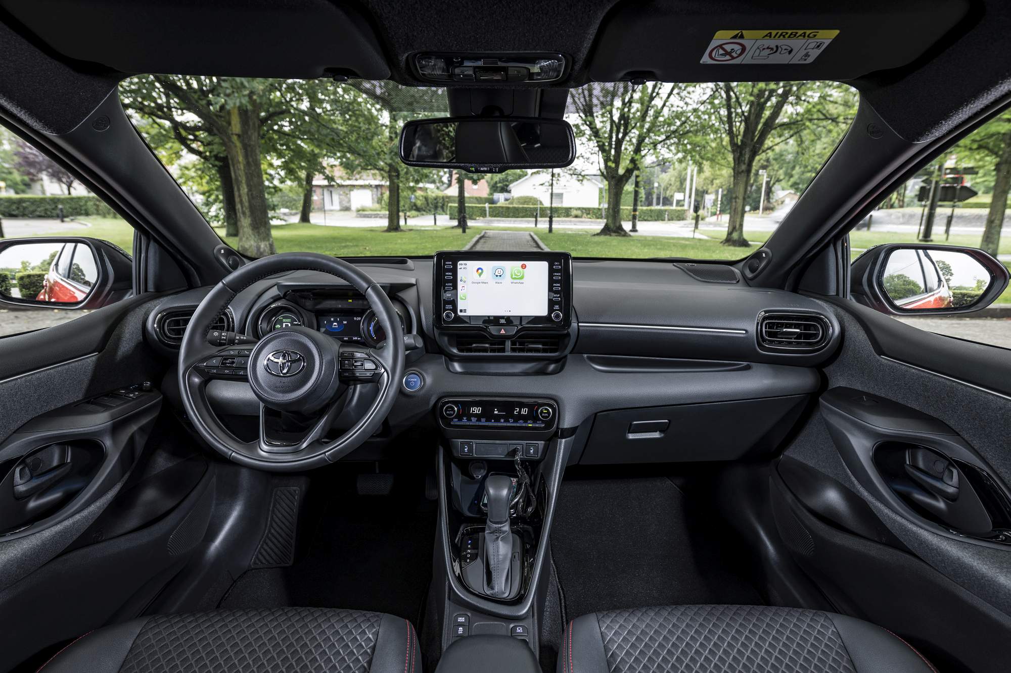Em matéria de segurança, também há a destacar a integração do módulo de segurança Toyota Safety Sense com elementos como o reconhecimento de sinais de trânsito, assistente de manutenção de faixa, sistema de Pré-colisão com funções alargadas de travagem autónoma e cruise control adaptativo inteligente. Além disso, juntando-se à maior resistência estrutural, o novo Yaris estreia também um airbag dianteiro central que impede que os dois passageiros da frente batam entre si com as cabeças em caso de colisão lateral.